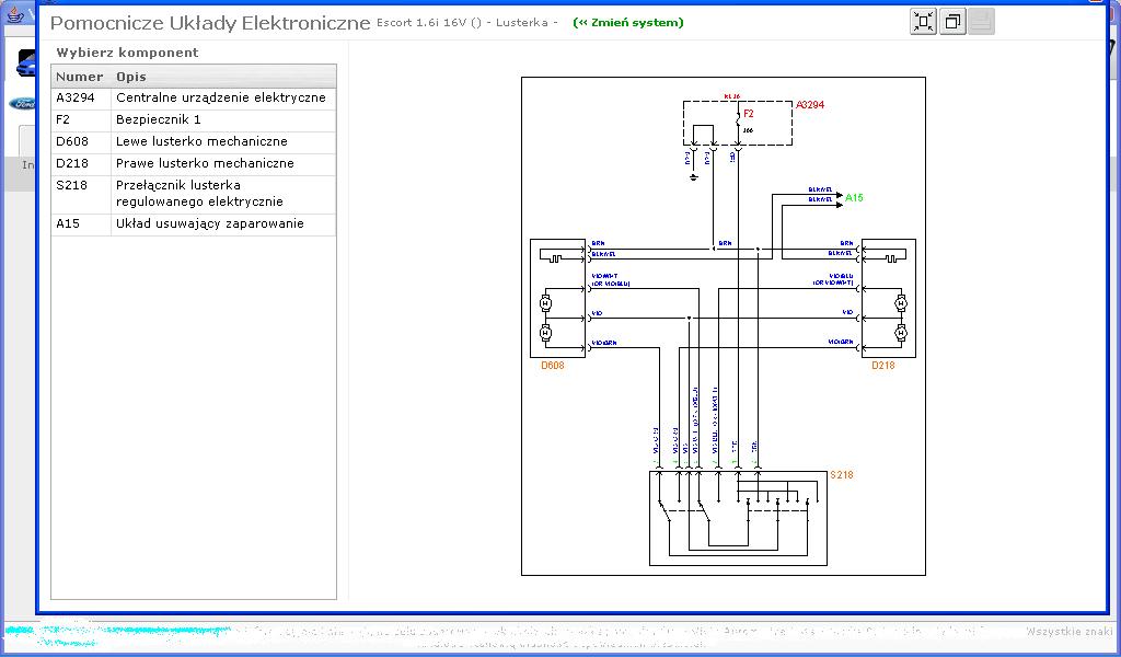 czerwony - zasilanie sterowania lusterkami