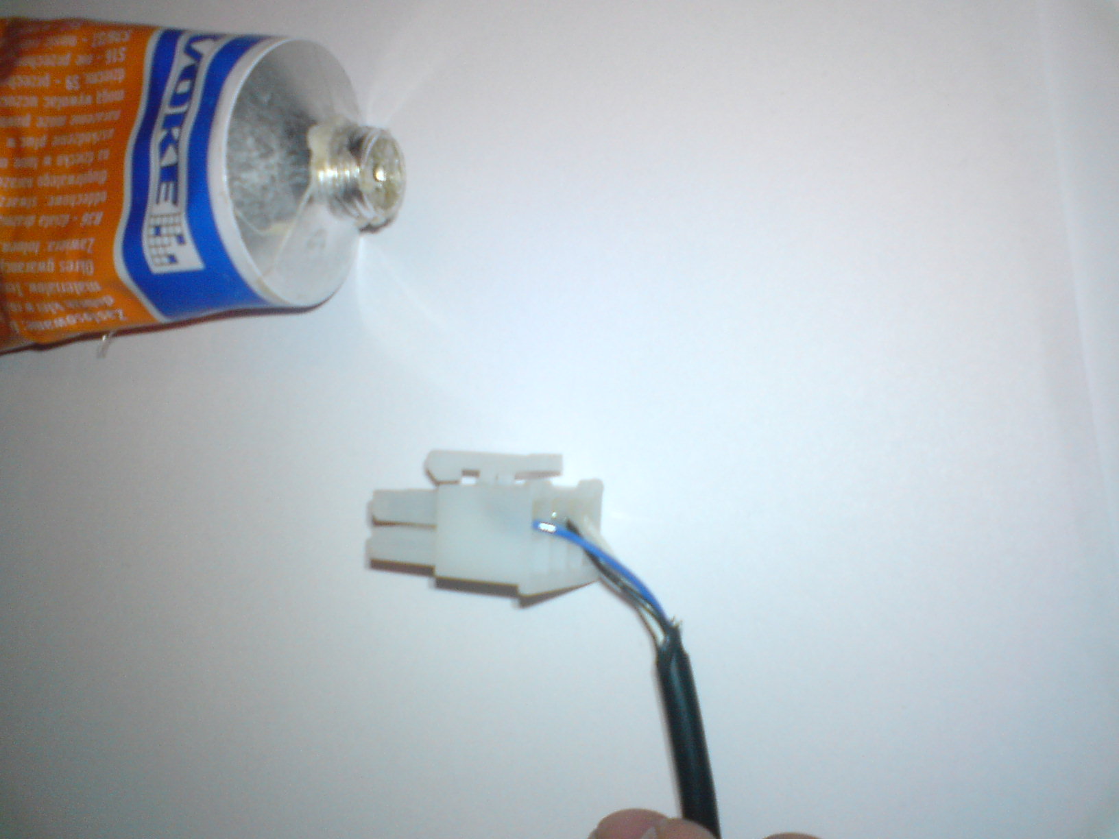 Potem całość zabezpieczamy - ja tył wtyczki zalałem klejem polimerowym, ale może być coś innego