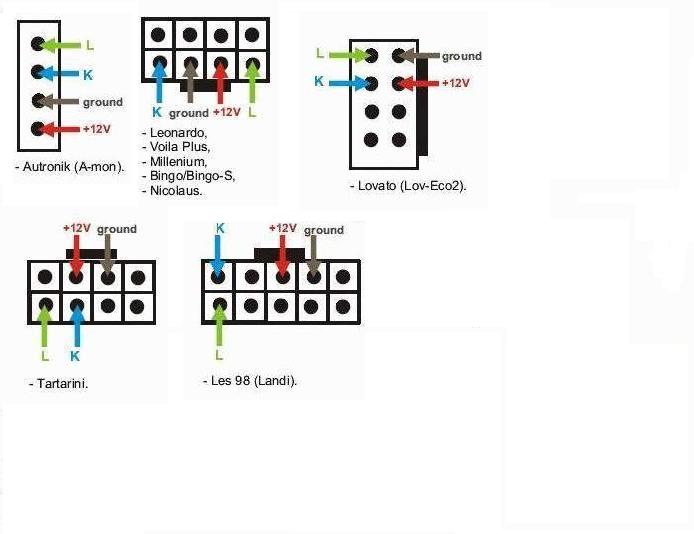 A tak przy okazji dołączam schemat podłączenia wtyczek w innych sterownikach LPG - schemat z forum elektroda (pamiętajmy, że +12V zostawiamy nie podłączone)