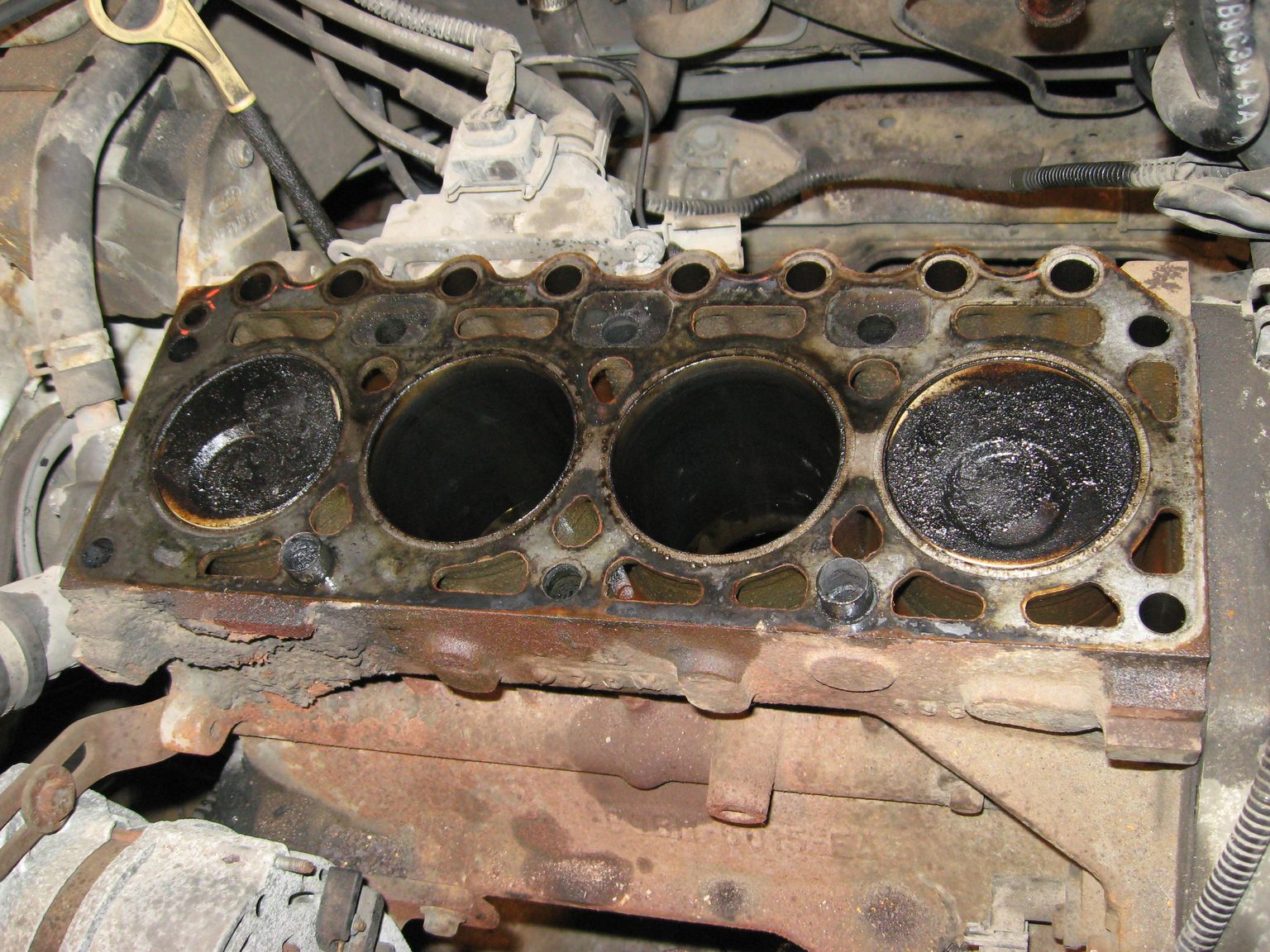 Dodam jeszcze, że finansowo cała operacja jest bez sensu. Remont takiego silnika przy dzisiejszych cenach samochodów jest nieopłacalny. Na części i kilka narzędzi które były mi potrzebne wydałem gdzieś 600-700 PLN. A przecież należało by jeszcze wymienić panewki główne, rozrząd splanować głowicę, wymienić tłoki i zawory to byłby dopiero remont! No ale trzeba podejść do tego racjonalnie. Jeśli robocizna jest za darmo to jeszcze ok. Narzędzia w końcu zostaną... Natomiast daje to sporo satysfakcji i frajdy :-)