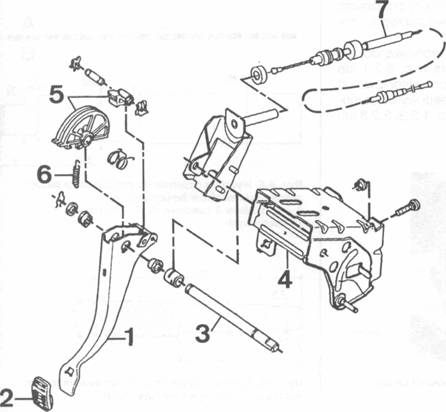 Robota przekichana, bo praktycznie trzeba zdemontować wszystkie pedały wraz z rozsprzęgleniem serwa od pedału hamulca, aby wyciągnąć wspólną oś (na rys. nr 3 ) na której wisi - gaz, hamulec i sprzęgło.Dalej mając to na zewnątrz pojazdu-prościzna.