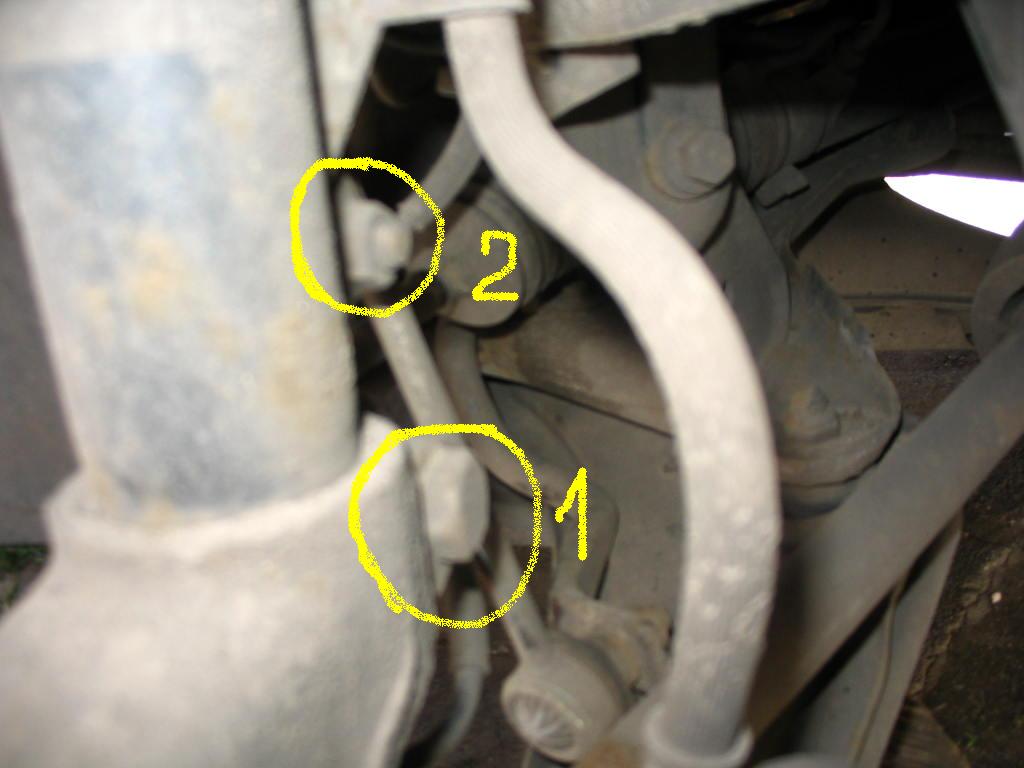Odkręcamy łącznik drążka stabilizatora - uchwyt wężyka hamulcowego - i jeśli jest to przewód od ABS-u.