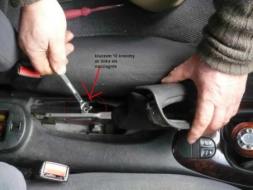 pod autem idzie linka od recznego, dochodzi do takiej blaszki, a potem od blaszki odchodza juz dwie linki do lewego i prawego kola oddzielnie (i to je sobie podciagasz odpowiednio dla kazdego kola). nalezy jej szukac na srodku pomiedzy mocowaniami tylnej belki (tak mniej wiecej). zerknij na ta aukcje - jest rysunek gdzie tego szukać http://moto.allegro.pl/item499008714_10 ... scort.html