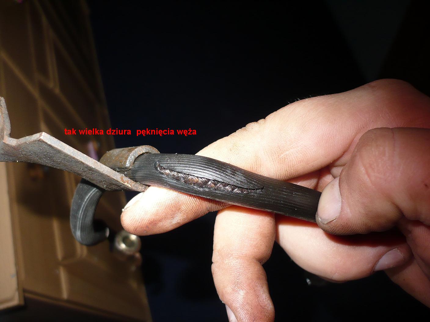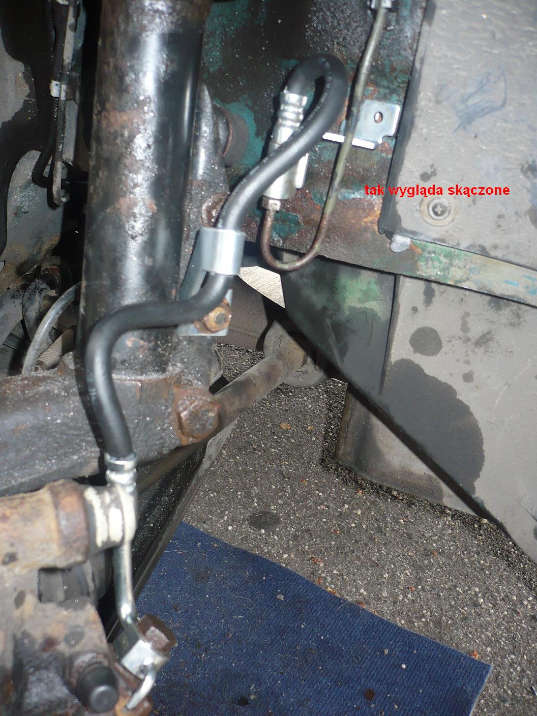 Na zdjęciach widzę druciarsko łatany przewód hamulcowy .