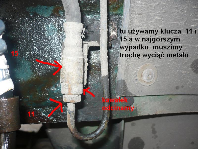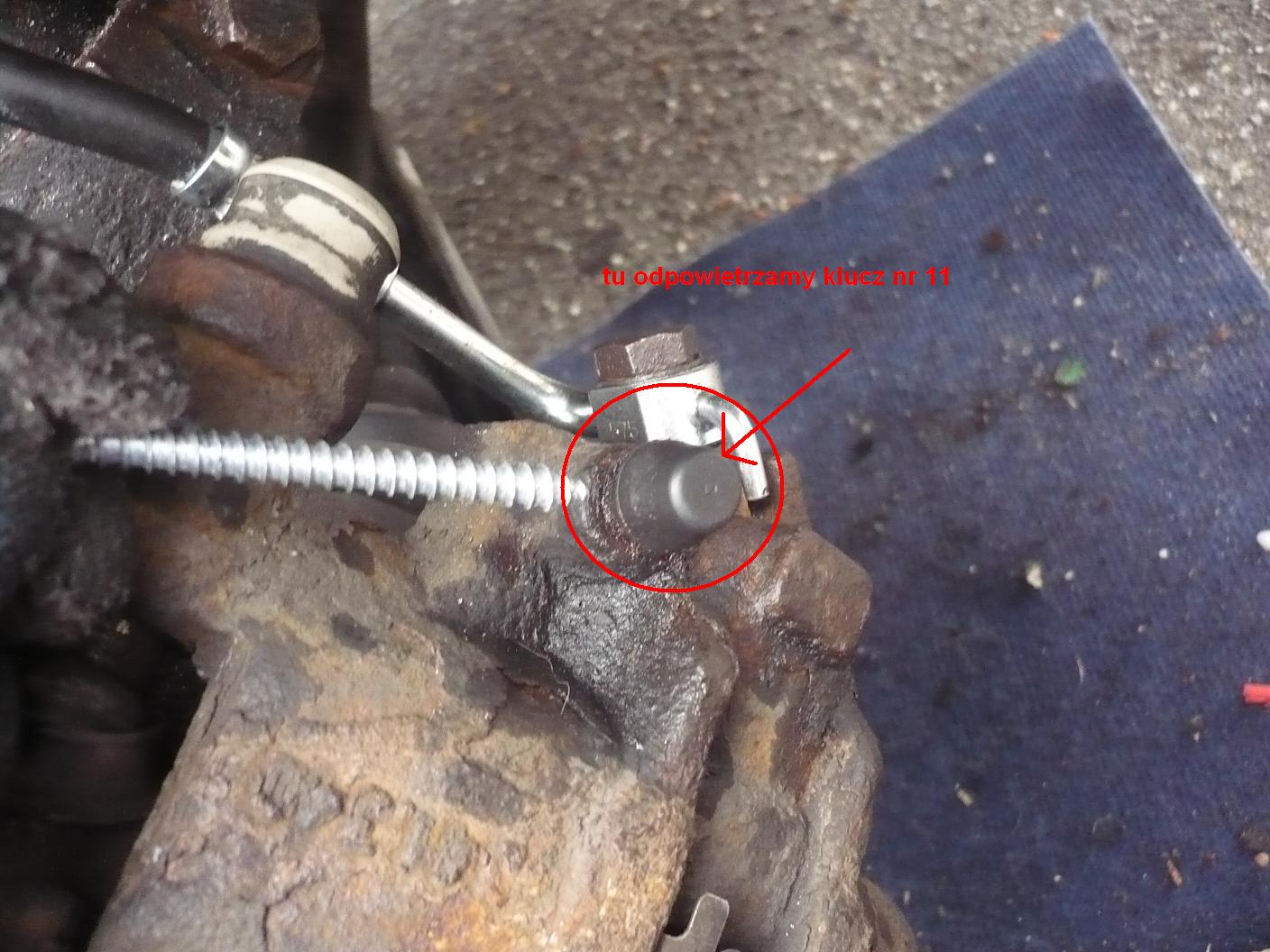 To nie "śruba 11" tylko odpowietrznik. I ciąć kawałek metalu? Z czego, z zacisku? Z zawieszenia? pierwsze słyszę, by coś takiego robić!
