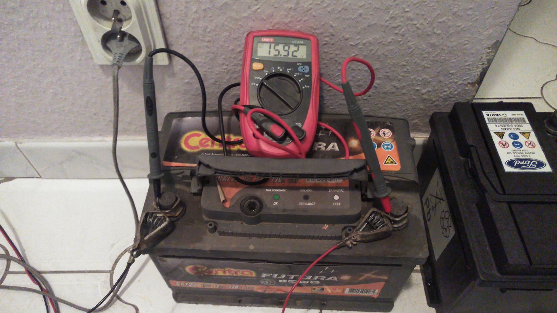 Dzis ladowalem prawie 9 letni akumulator. Zakonczylem ladowanie na takim stanie jak na fotkach. Prad od 6 godzin stal w tym samym miejscu, mysle ze bardziej by juz nie zszedl. Oszywiscie w akumulatorze sluchac bylo bulgotanie (duza ilosc babelkow) i byl cieply, 35 stopni C. Czy tak powinienem zakonczyc, czy czekac dalej ? A moze za dlugo ? Jakby prad zszedl bardziej to by bylo wyzsze napiecie bo taka ma charakterystyke ten banalny prostownik. Ale jak pisalem: nie wyglada aby prad chcial zejsc.