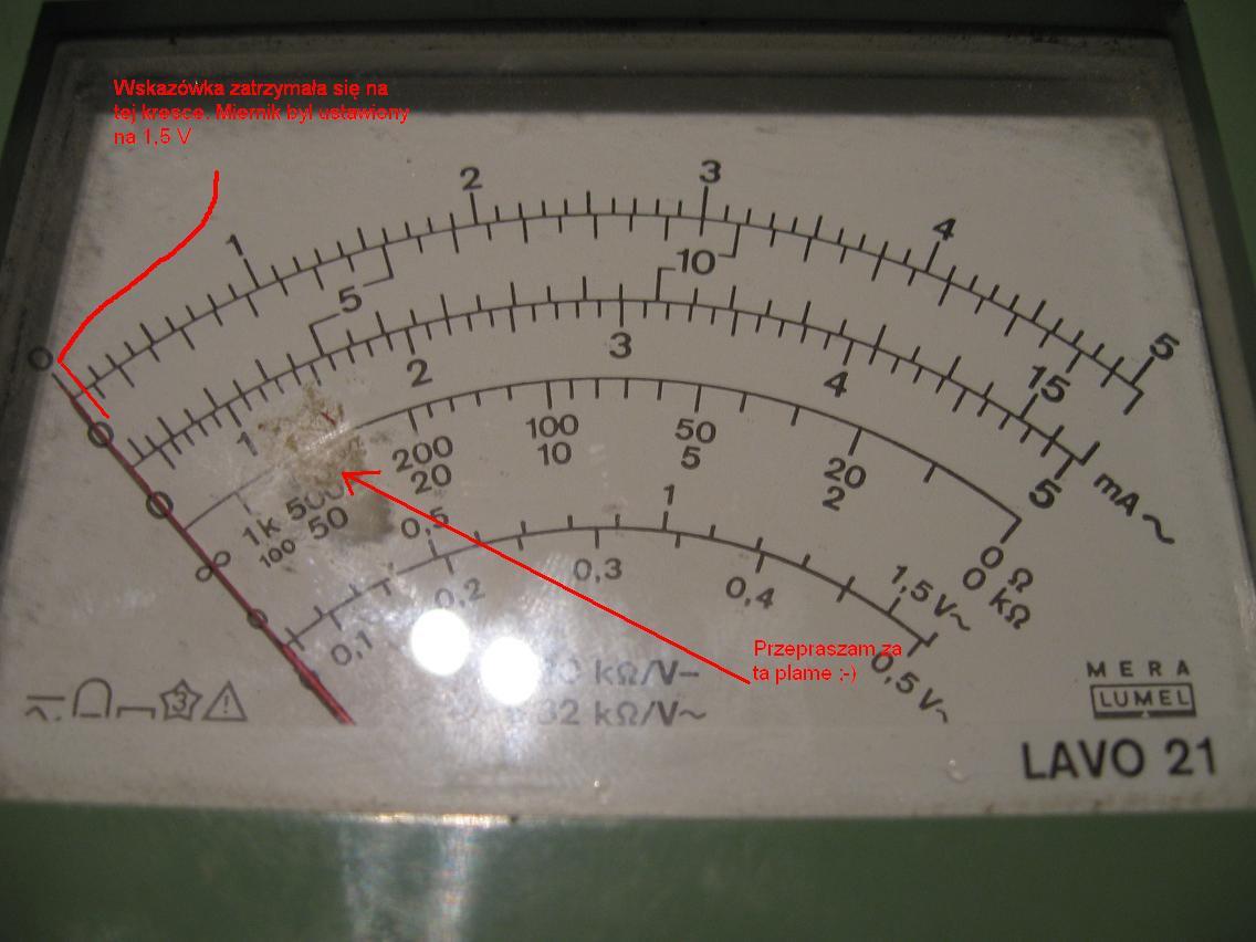 Zmierzylem to napicie i bylo cos kolo 0,1 V,tylko ze teraz nie pamietam czy miernik byl ustawiony na 1,5 czy 5V :-| a ze mierzylem to na wzkazowkowym to ma znaczenie, w kazdym badz razie nie zmienialo sie w tych granicach co napisaliscie. Ponizej przedstawiam za pomoca zdjec jak to zrobilem :P Co dalej zrobic?? Pomyslec nad zakupem sondy? jezeli tk to prosze o pomoc w wyborze ktora kupic bo na allegro jest tego pelno i sam juz nie wiem:/