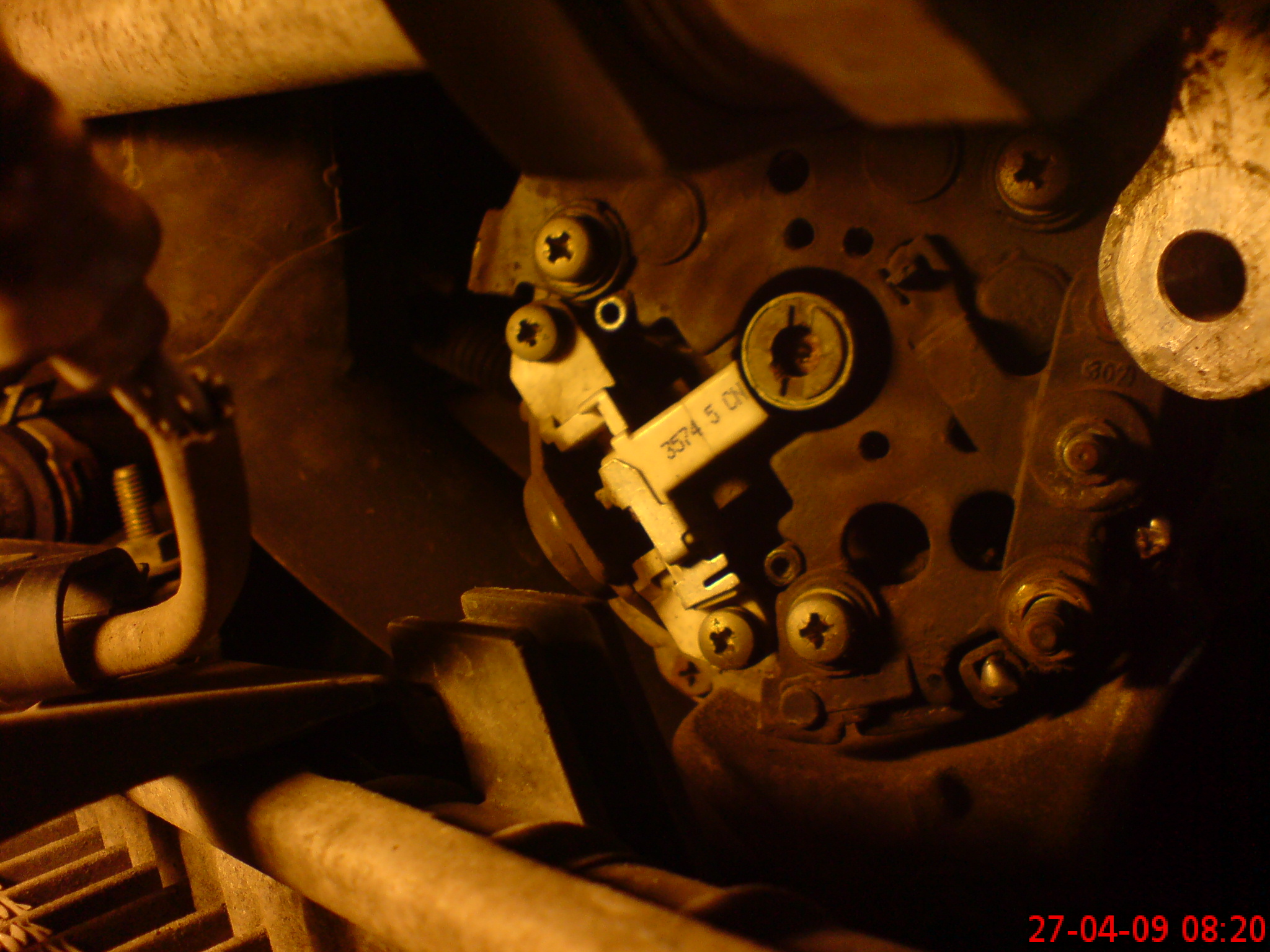Na szczęście udało mi się , po odkręceniu alternatora - wysunąć go trochę do przodu obok chłodnicy i tam w dziupli rozkrecić zadek , żeby się dostać do regulatora .