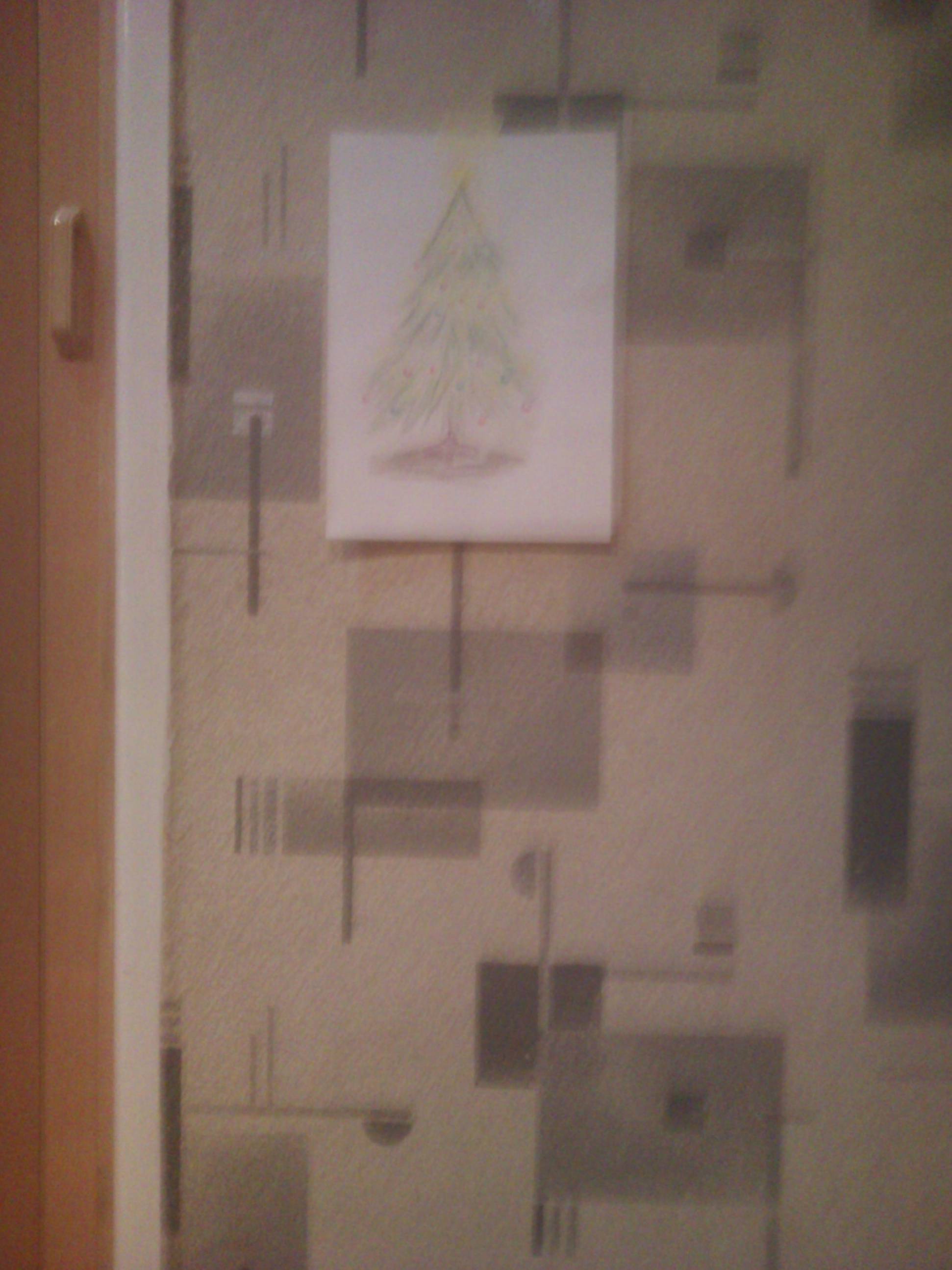 Proponuję taką choinkę jak na foto - narysować na kartce i powiesić na ścianie - będzie jeszcze więcej miejsca na prezenty