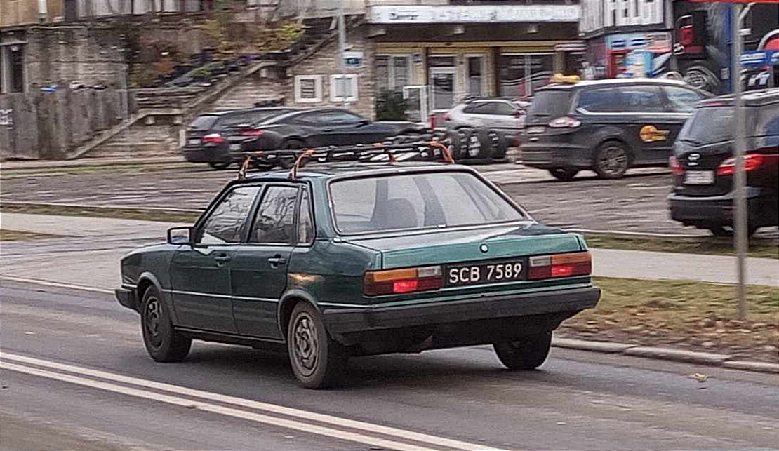 Jak ja takie smaczki lubię. I to w okolicach wszelkich ważniejszych świąt wyjeżdżają takie okazy na drogi. Tu Audi 80 B2 jeszcze na starych tablicach. Nawet bardzo starych bo ta seria SCB z województwa szczecińskiego pochodzi z okolic '87-'89. Tak więc samochód o bogatej przeszłości i tyle lat w jednych rękach. Takie historie szanuję.