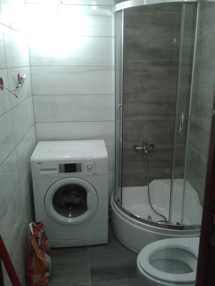 Pozostało jeszcze kolumnę z deszczownią założyć, pojechać silikonem fugi w narożnikach jak doschną, silikonem bezbarwnym powtórzyć uszczelnianie prysznica i odwalić sufit na biało. Potem jeszcze kombinacja z umywalką - będzie na pralce bo brak innego miejsca tylko muszę jakieś podniesienie wykombinować żeby za wysoko nie było ;)