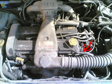 Jamszoł taki mam silnik i strzałką Ci zaznaczyłem dzie się u mnie znajduje termostat. Bo na Tym zdjęciu co mi dodałeś jest pokazane tam z tyłu na tym kolektorze EFI:( i nie wiem czy to co ja mam w termostacie to jest to co ty masz tam na tym zdjęciu:)