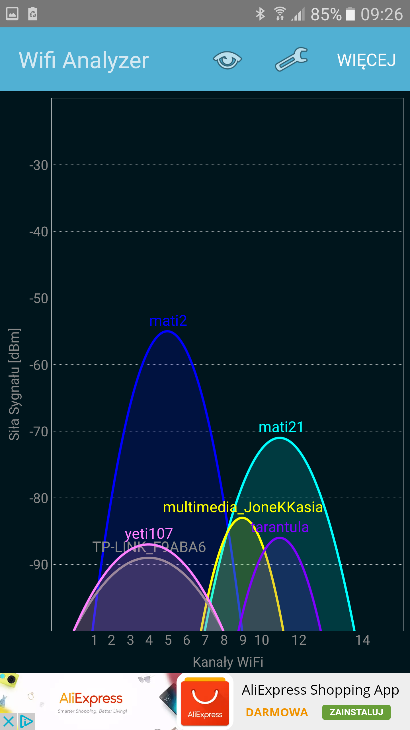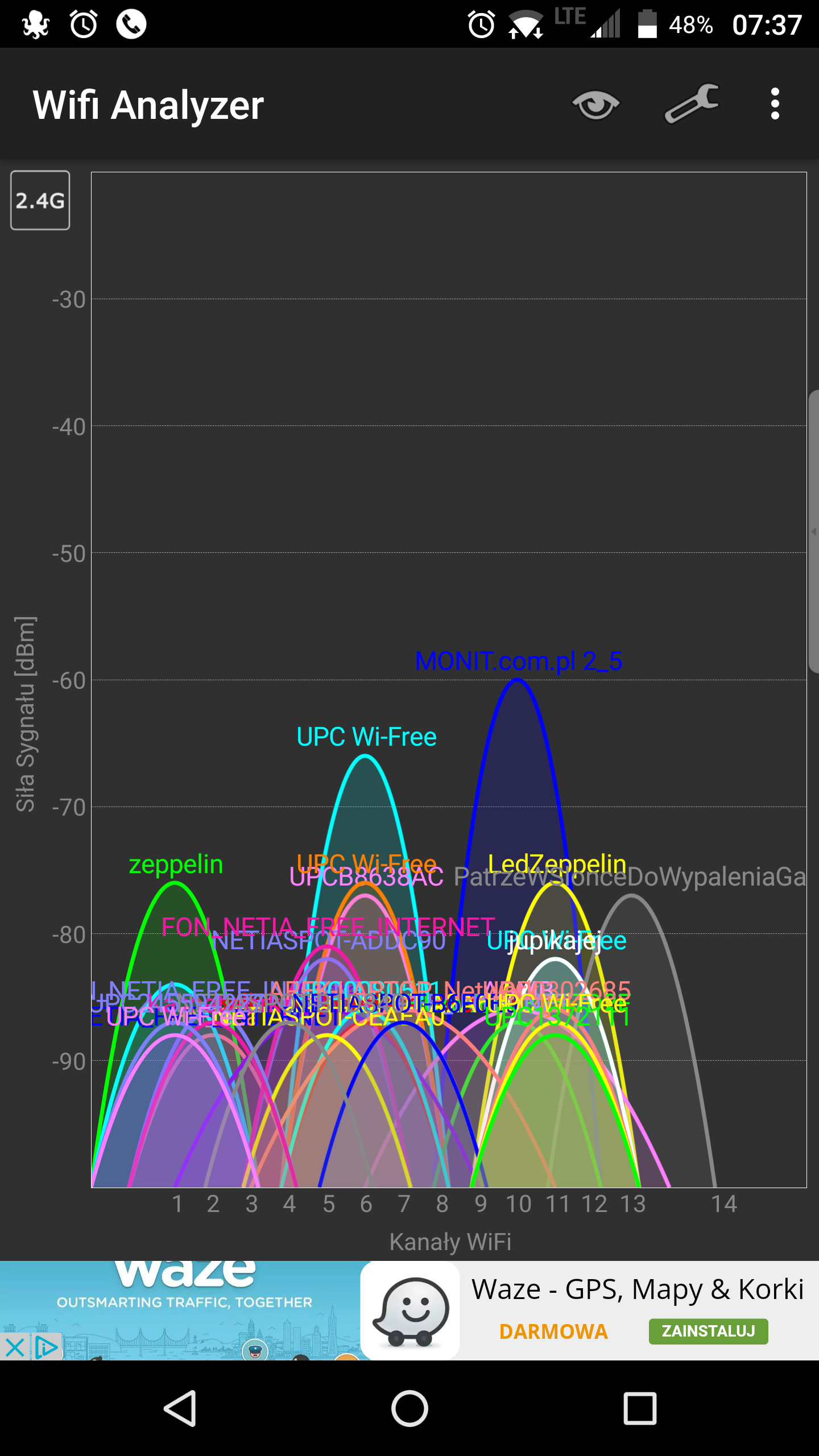 No ładnie..... te WiFree od UPC sztuczny tłok robią bo to dublowane kanały z ich routerów. Masz UPC i właczoną funkcję WiFree to obok twojej sieci jest też sieć WiFree widoczna.WieSiu pisze:A tak wygląda u mnie ilość sieci WiFi na paśmie 2,4GHz