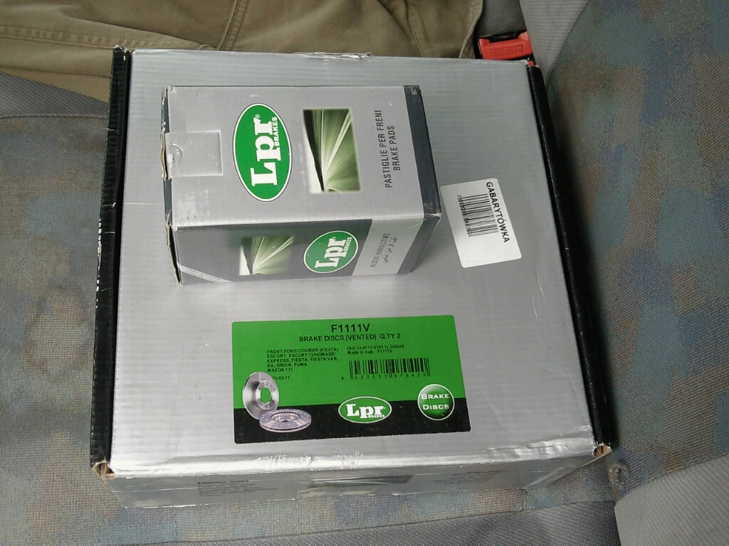 pewno co niektorzy zapytaja co ja najlepszego zrobilem i czy go tak nienawidze, ze kupilem zestaw firmy LPR ale powiem szczerze - w poprzednim escorcie zabulilem ponad 350 zł za zestaw Brembo + Ferrodo i nie bylo zadnej ronizcy miedzy noname jaki siedzial a tym SUPER-HIPER cudem techniki wiec tym razem nie przesadzalem - LPR ponoc jest w porzadku (Włoszczyzna) i kosztowało 212zł w lokalnym sklepie :D