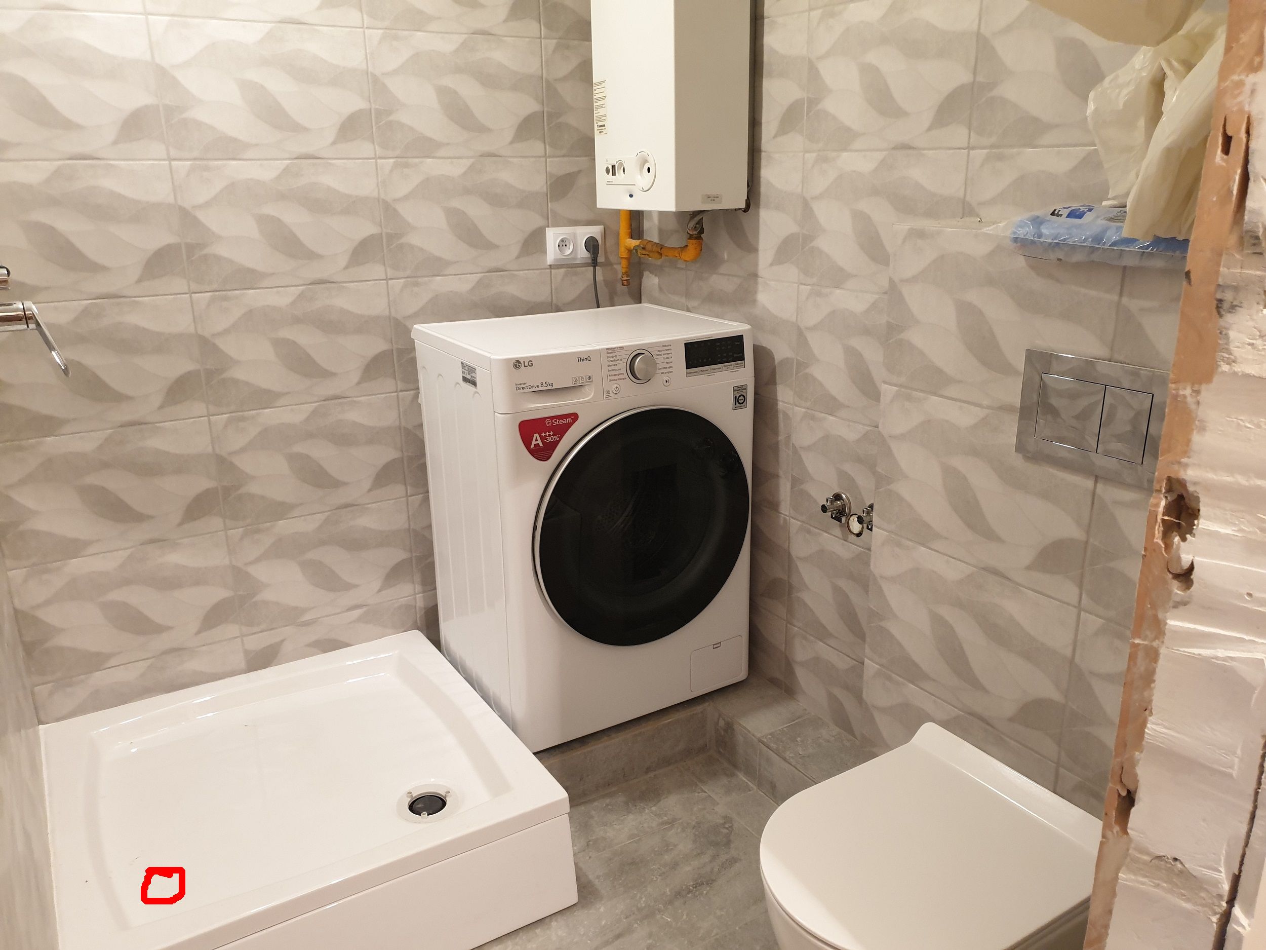 A brodzik nie powinien być obrócony o 180 stopni? Odpływem w naroznik? Hmm