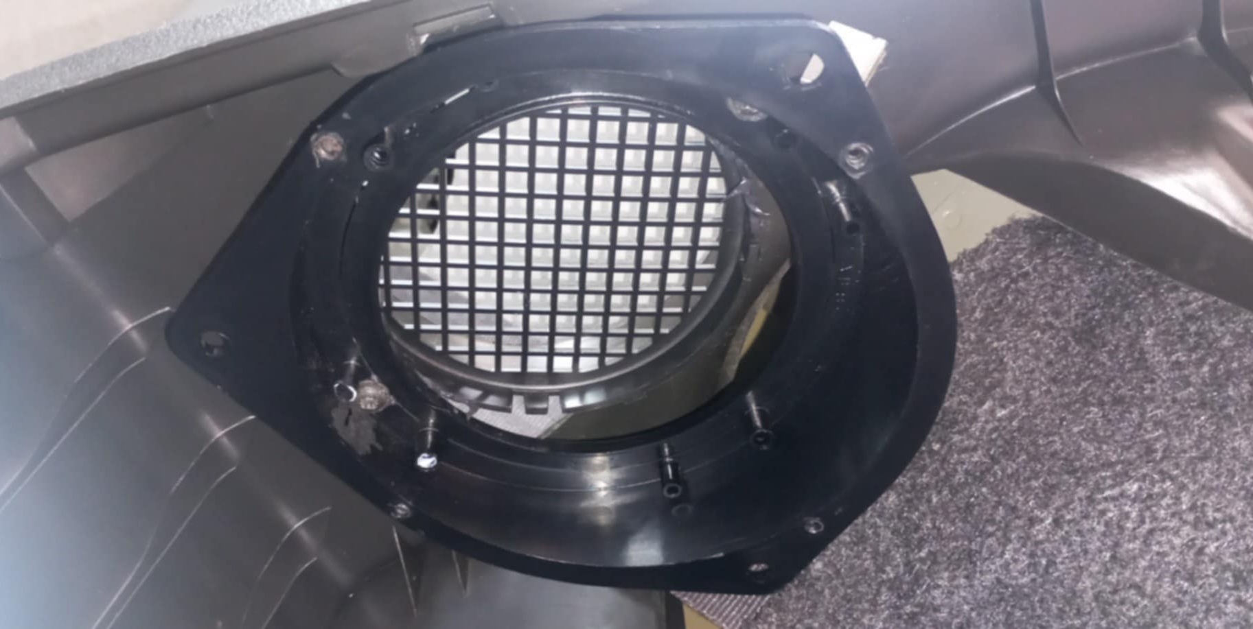 Nowy głośnik w drzwi na krótko przed założeniem maskownicy