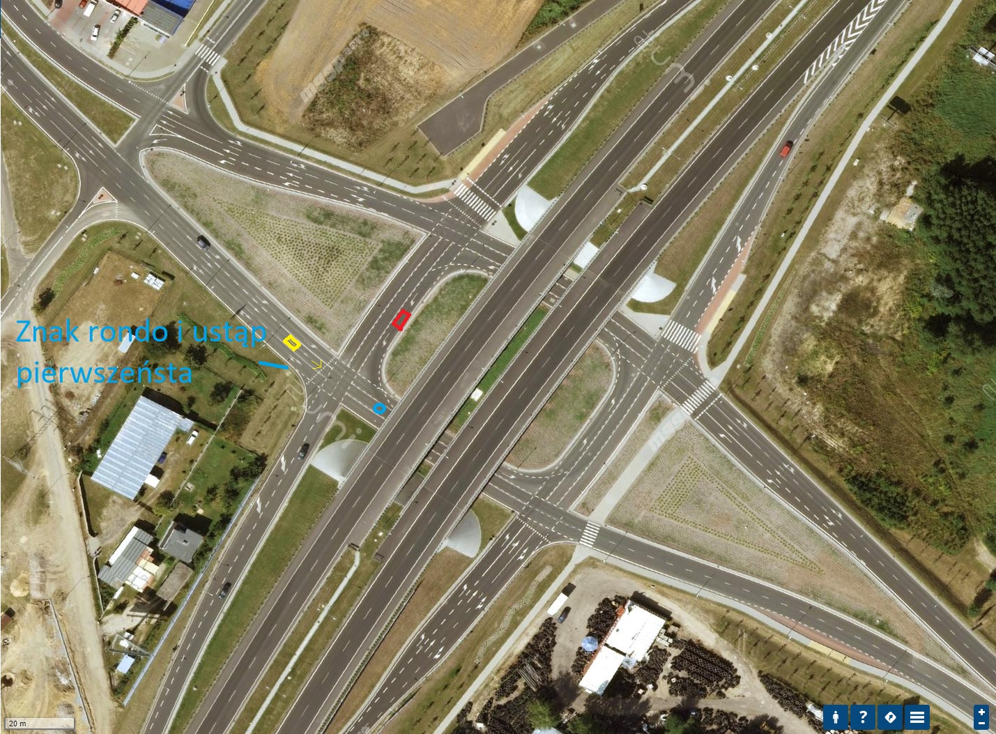 Ogólnie całość to rondo z ustąpieniem pierwszeństwa.
