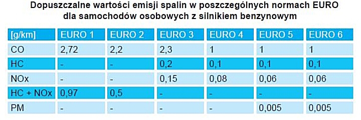 Wklejam tu jeszcze tabelkę z wartościami granicznymi podczas badania zawartości związków w spalinach dla każdej z grup EURO. Jestem ciekaw o ile niektóre parametry zostaną zredukowane jak katalizator trafi na swoje miejsce.