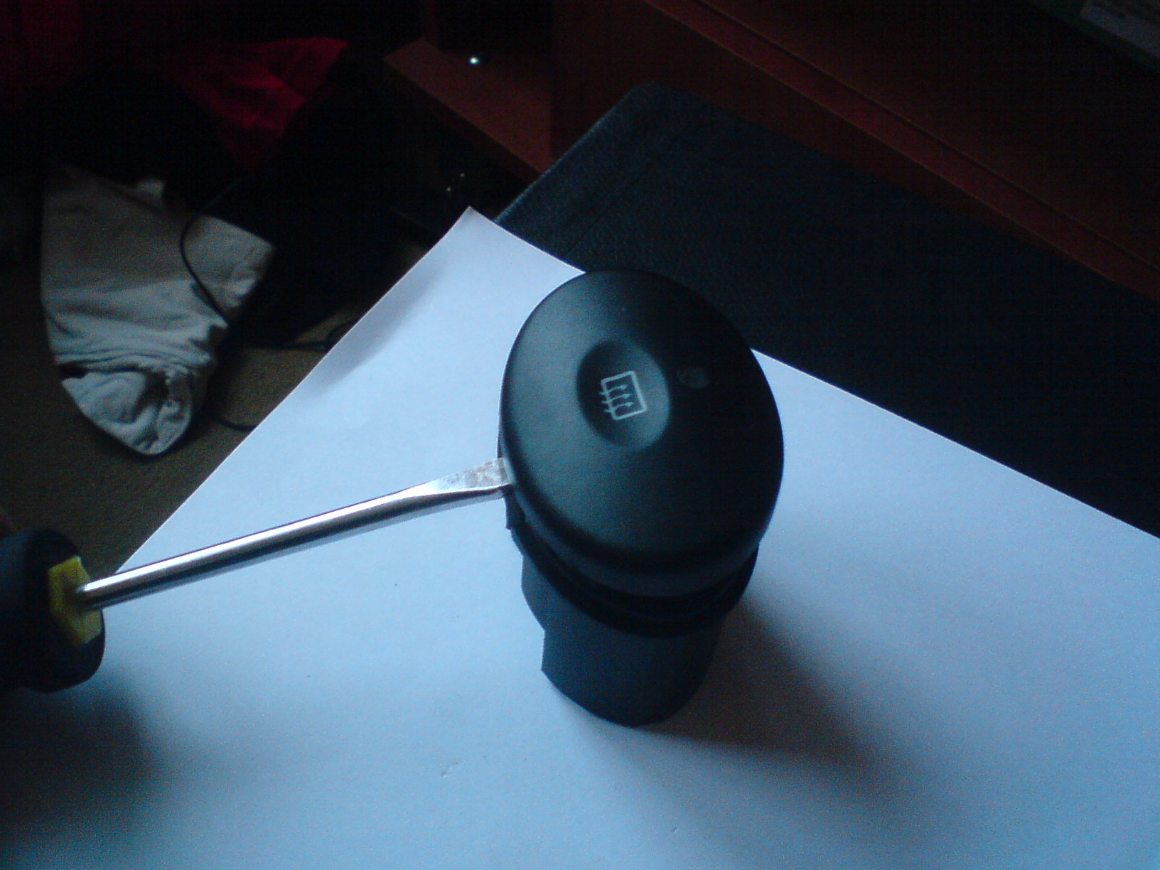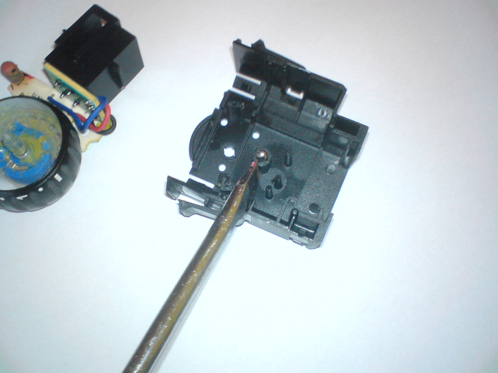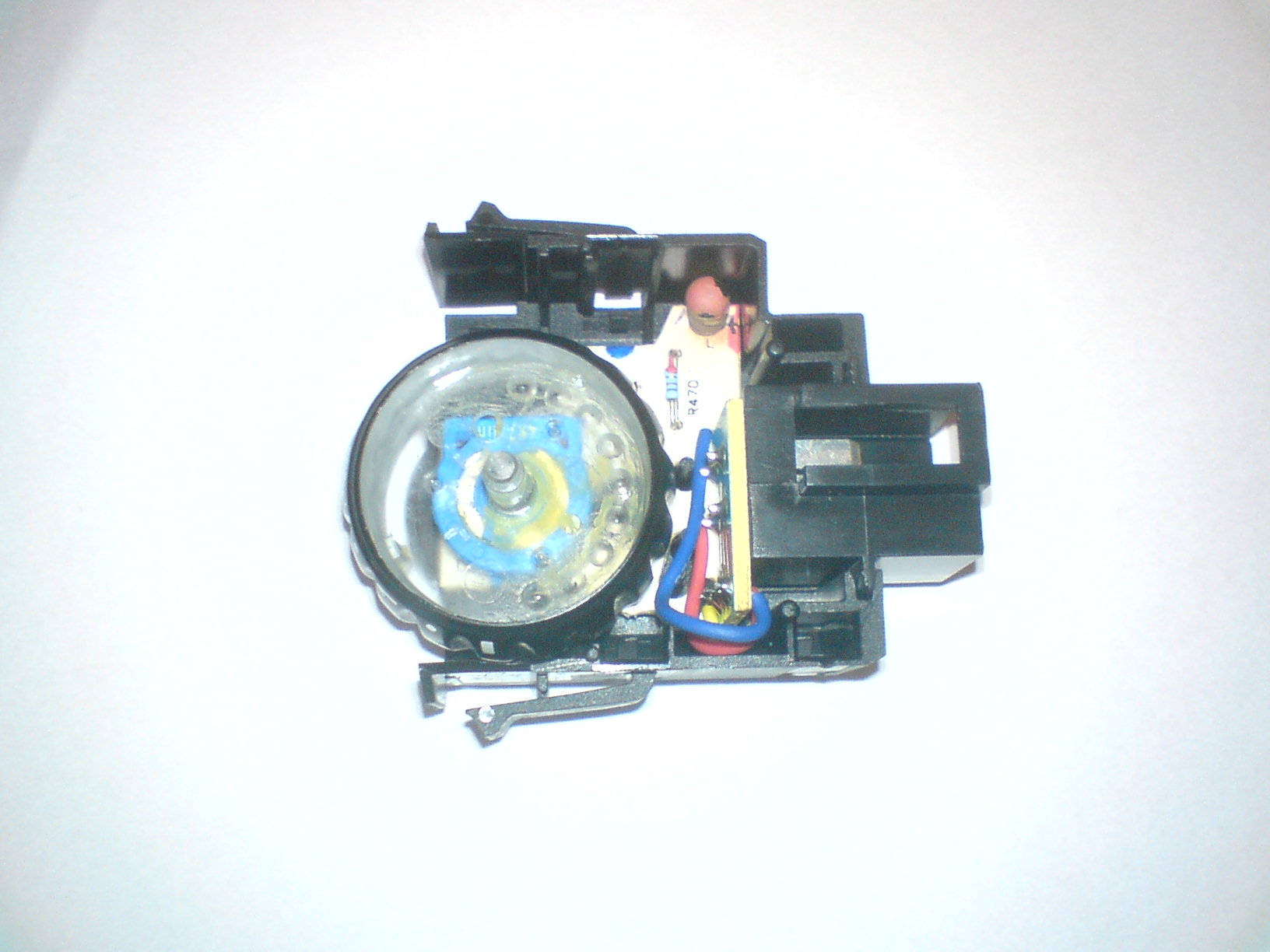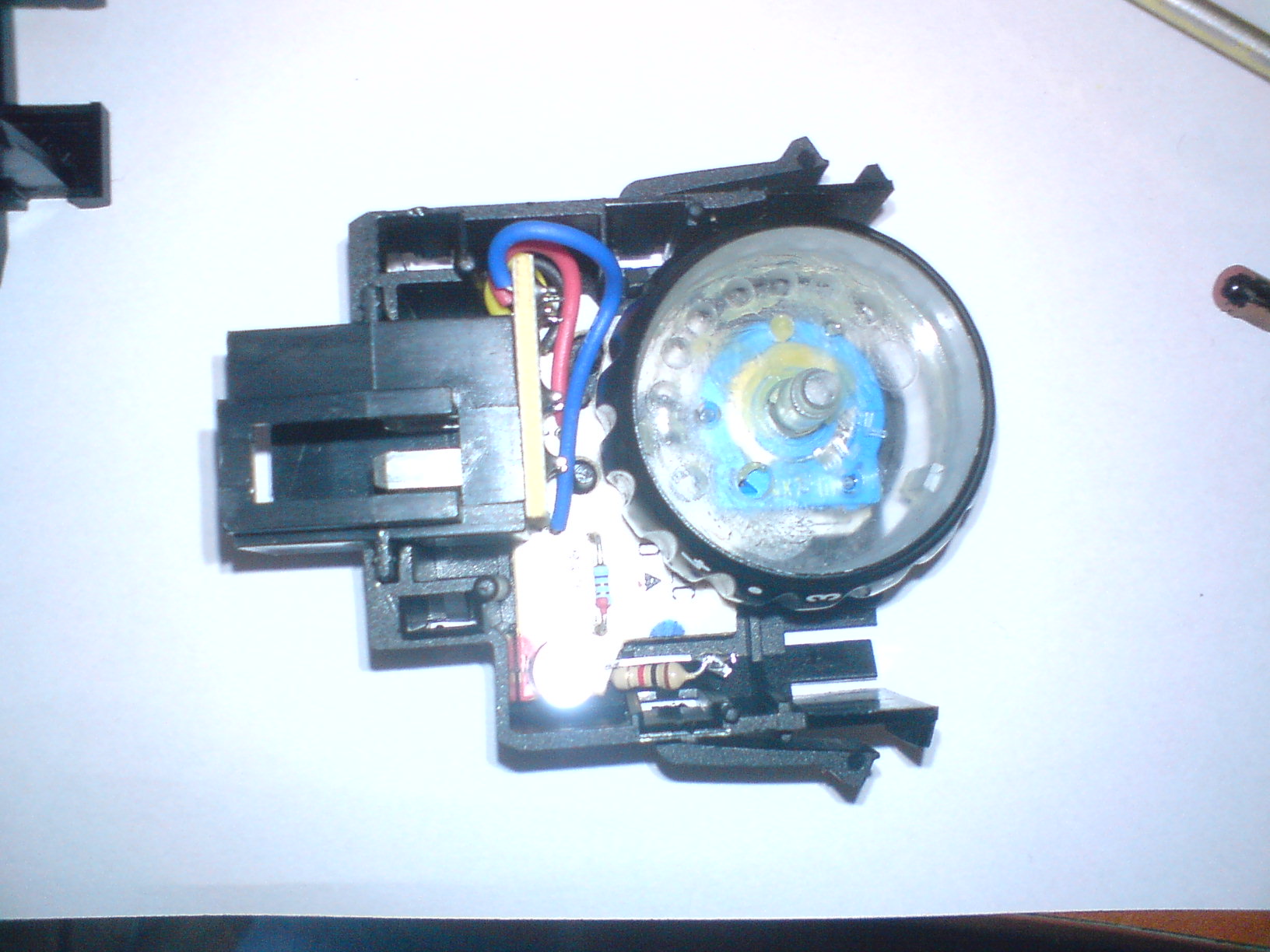 WAŻNE aby przy rozkładaniu żarówki nie zgubić takiego bolca ze sprężynką, który sprawia, że przełącznik "pyka" znajduje się on pod kółkiem (fot 4 i fot5)
