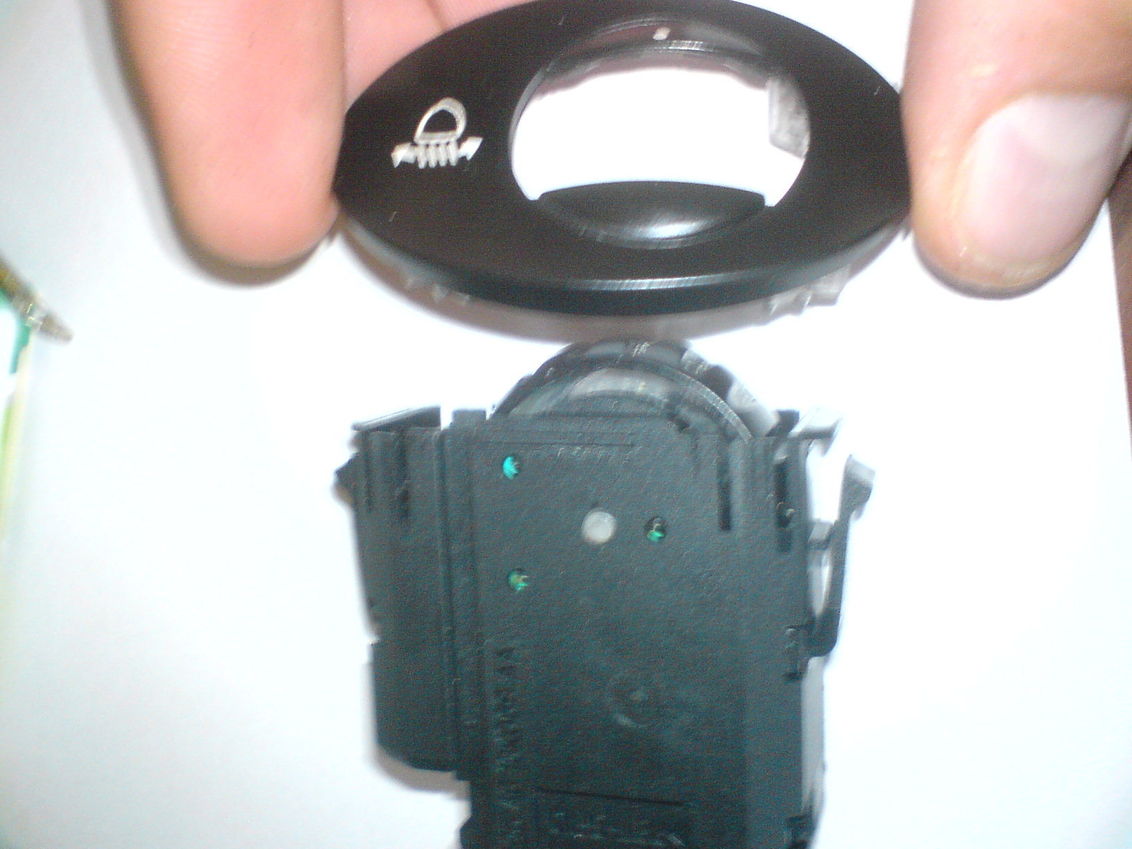 we wnętrzu mamy 2 diody żółta świeci gdy np ogrzewanie szyby jest włączone - jej nie ruszałem, oraz zielona (fot 3) odpowiedzialna za podświetlenie przycisku