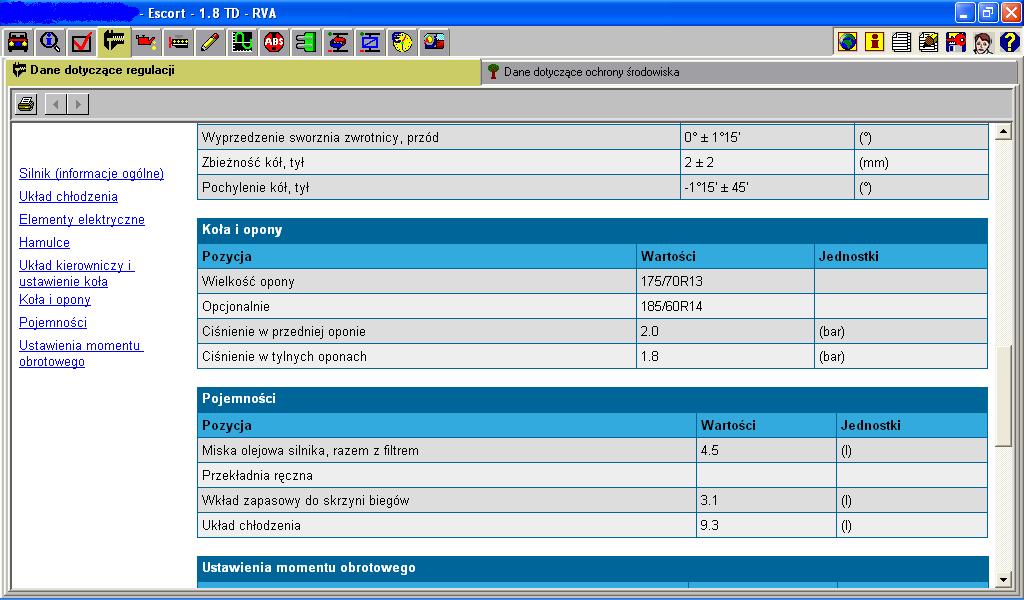 Dane techniczne dla silnika RVA 1.8 Turbo D.70 hp.