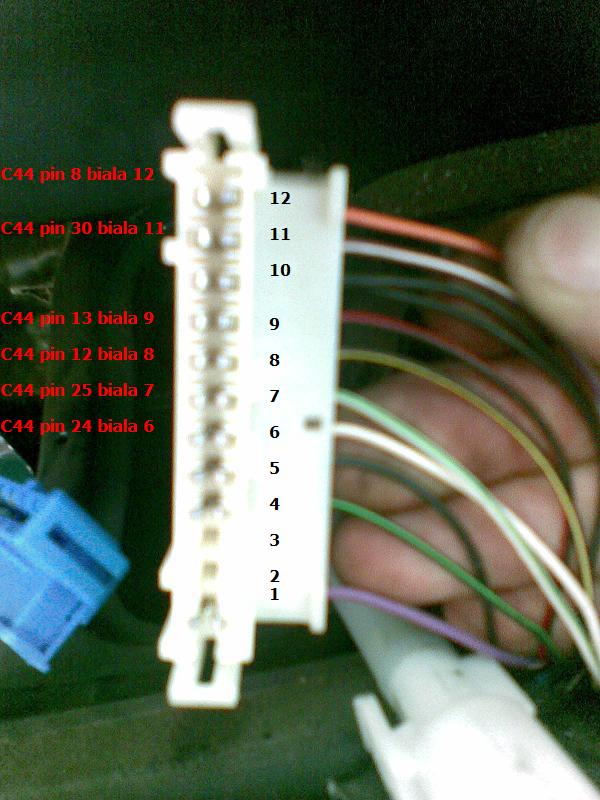 C44 pin 12 - C3006 (biała) pin 8 (kontrolka ręcznego)