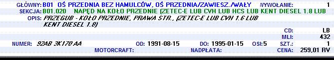 Rozumiem, odważnik mam na półosi, chodzi mi o to że nie ma u mnie półosi z łożyskiem tak jak to jest w mondeo. Tylko że ja potrzebuje sam numer przegubu, a nie całego kompletu z półosią.