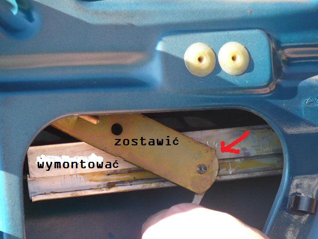 proste, wlozyc cos miedzy te dwie blachy i podwazac tak zeby tą z przodu czesc "wyrwac". Wtedy kulka z prowadnicy szyby wyskoczy. Nie boj sie uzyc ciut sily, na penwo to wyskoczy.
