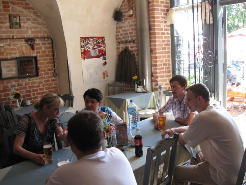 Powrót z powrotem do wozów i drugi spacer w dół (patrząc na mapę ) - w dół nad Wisłę w lewo do bramy Ostrołęckiej - tam piwko i kola (prawy narożnik żółtej trasy ) - następnie lekko pod górkę schodami i marsz wzdłuż najdłuższego budynku w Europie - czyli budynek koszar - budynek ma 2800 m .