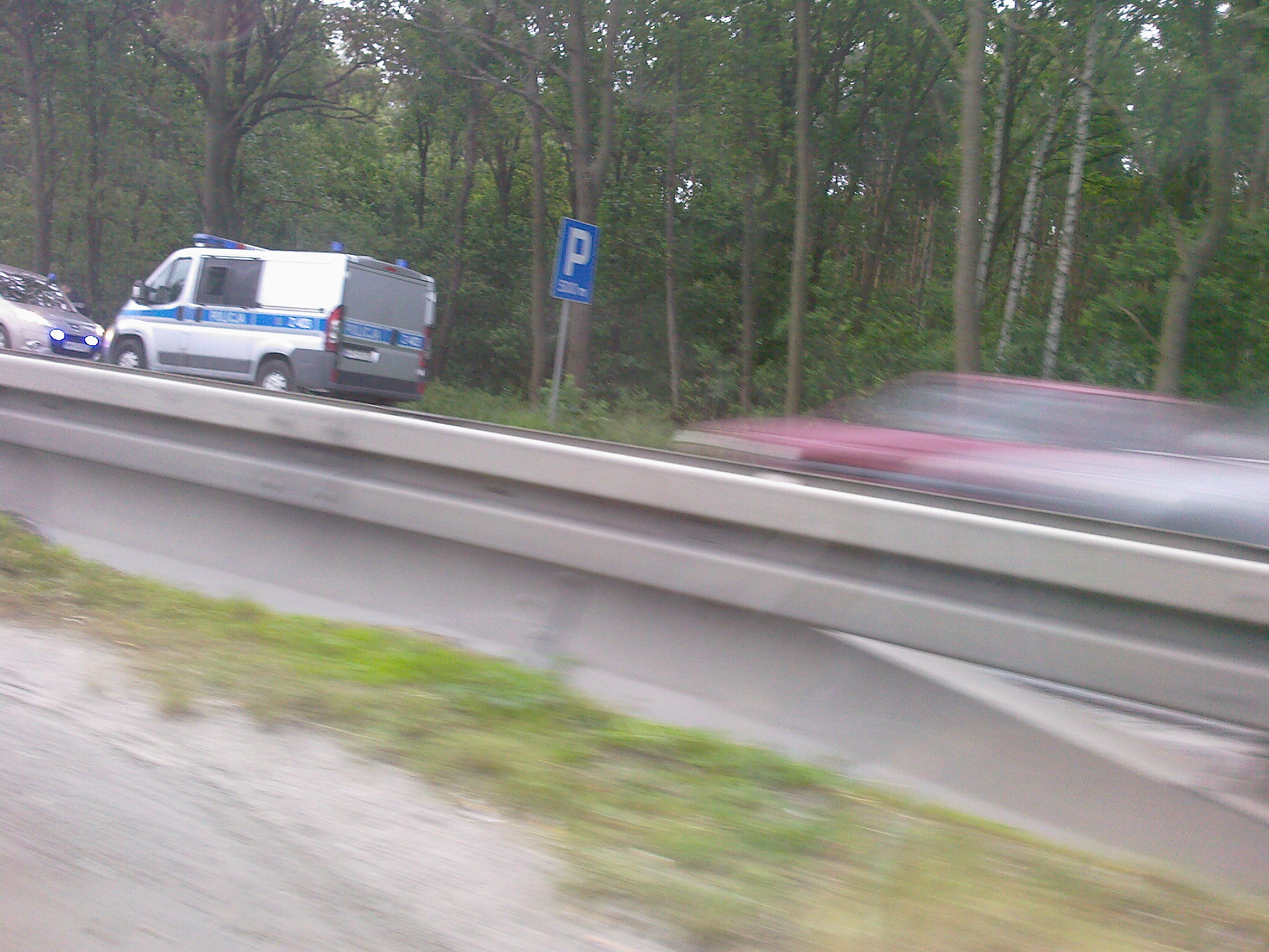 Podobno był napad na kantor w Centrum Handlowym "Maximus" w Nadarzynie. Podobno 3 osoby walczą o życie. Policja otoczyła samochodami i z powietrza cały las, patrząc od południa to na prawo od krajowej 8, czyli las w Magdalence do Piaseczna. Non-stop jechały na kogutach misiaki, przeciskając się środkiem gdy my staliśmy w korku. las otoczony, śmigłowiec nad głową, każdy wyjazd z lasu w eskorcie oznakowanych i nieoznakowanych radiowozów. Z tego co słyszeliśmy, sprawcy uciekając rozwalili na skrzyżowaniu Audi i uciekli w las (ostatnie zdjęcie). Więcej info i potwierdzenie prawdopodobnie w radiu i TV. Tyle wiemy.. I tyle od nas widzicie co się wydarzyło...