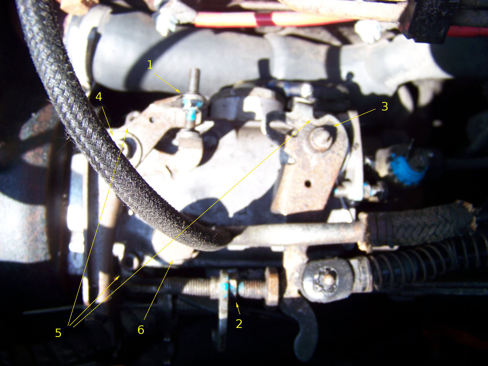Gdy poradziliśmy sobie z dźwigienkami to odkręcamy śrubę na klucz 17(nr6-fot.1). Można wtedy pokusić się o ściągnięcie strzykawką ropy z pompy przez odsłonięty otwór żeby nam potem nie zachlapała dookoła. Teraz pozostaje odkręcić 4 śruby na klucz torx trzymające pokrywę pompy (nr5).
