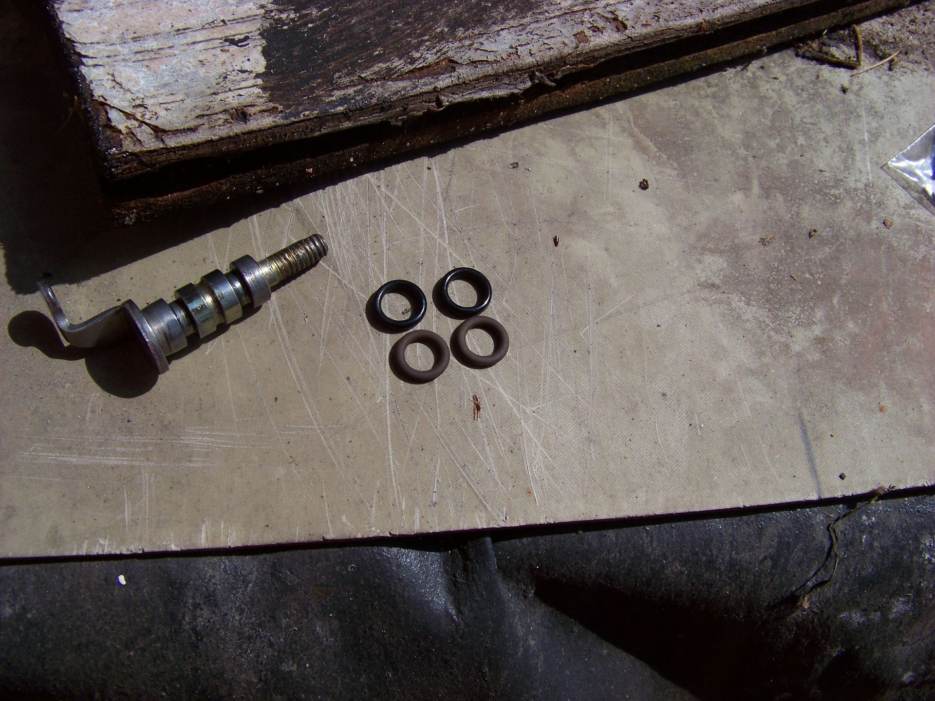Fotka 007 to porównanie starych (czarne) i nowych (brązowe) oringów uszczelniających dźwigienki. Sama ich wymiana jest w tym momencie banalna, trzeba tylko uważać żeby nowych gumek nie uszkodzić przy zakładaniu (o wadze tej sprawy żadnemu gentelmanowi chyba przypominać nie muszę :DDD )