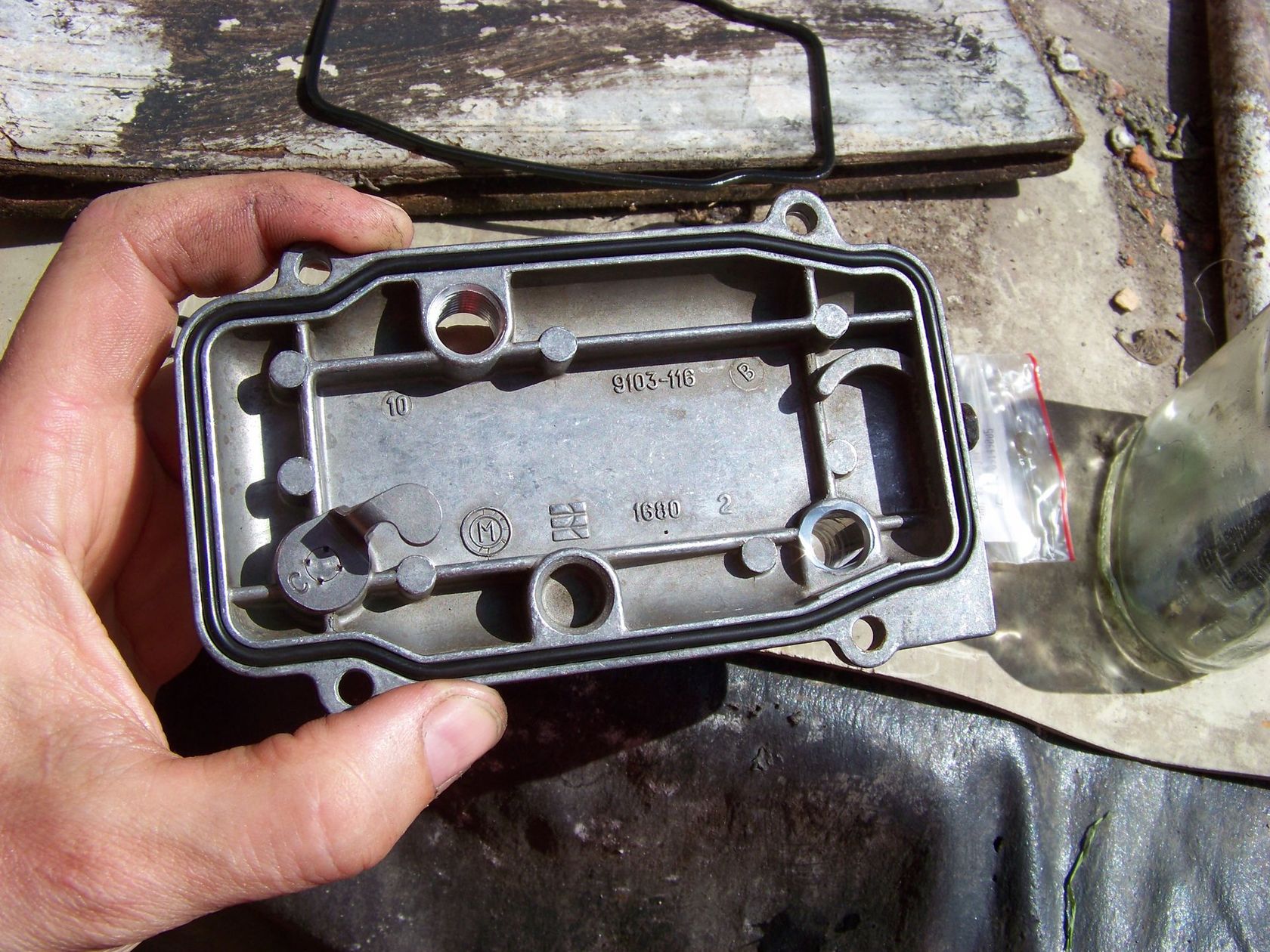 Foto 008 to już dźwigienka po wymianie oringów a 009 pokrywa z założoną nową uszczelką. Całość skręcamy w odwrotnej kolejności do demontażu.
