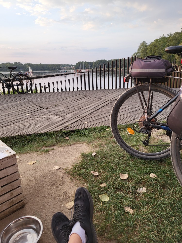 Jazda po lasach ponad 20km. Przerwa na kawę nad tym ściekiem zwanym Jeziorem Paprocany