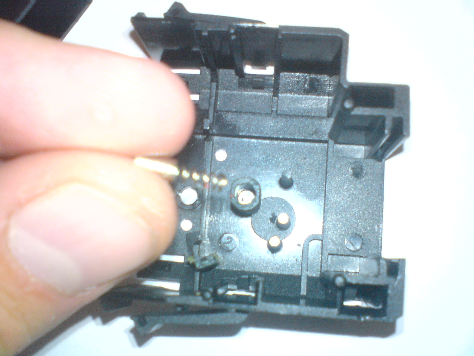 we wnętrzu mamy 2 diody żółta świeci gdy np ogrzewanie szyby jest włączone - jej nie ruszałem, oraz zielona (fot 3) odpowiedzialna za podświetlenie przycisku