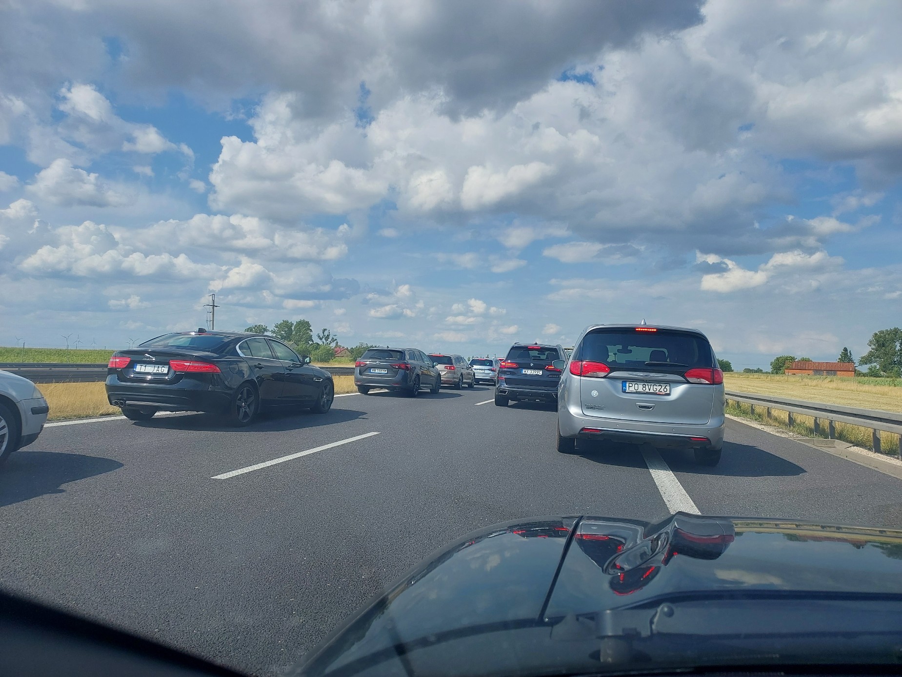 Z tyłu to samo tylko mniejsze bmw. Staliśmy tak prawie godzinę. Na szczęście niepotrzebny był korytarz życia bo pomoc nadjechała z przodu pod prąd. Nawet śmiglak wylądował.
