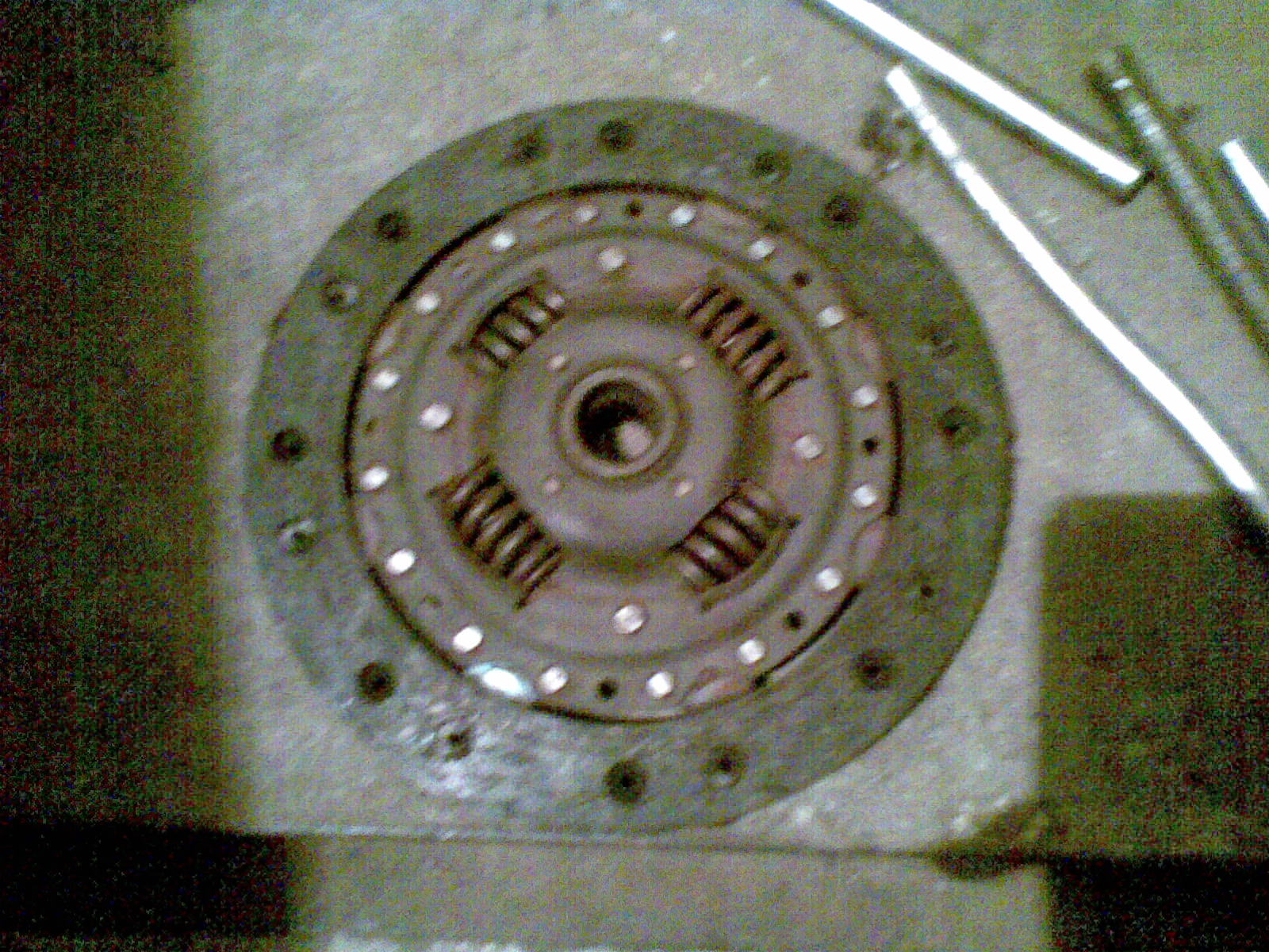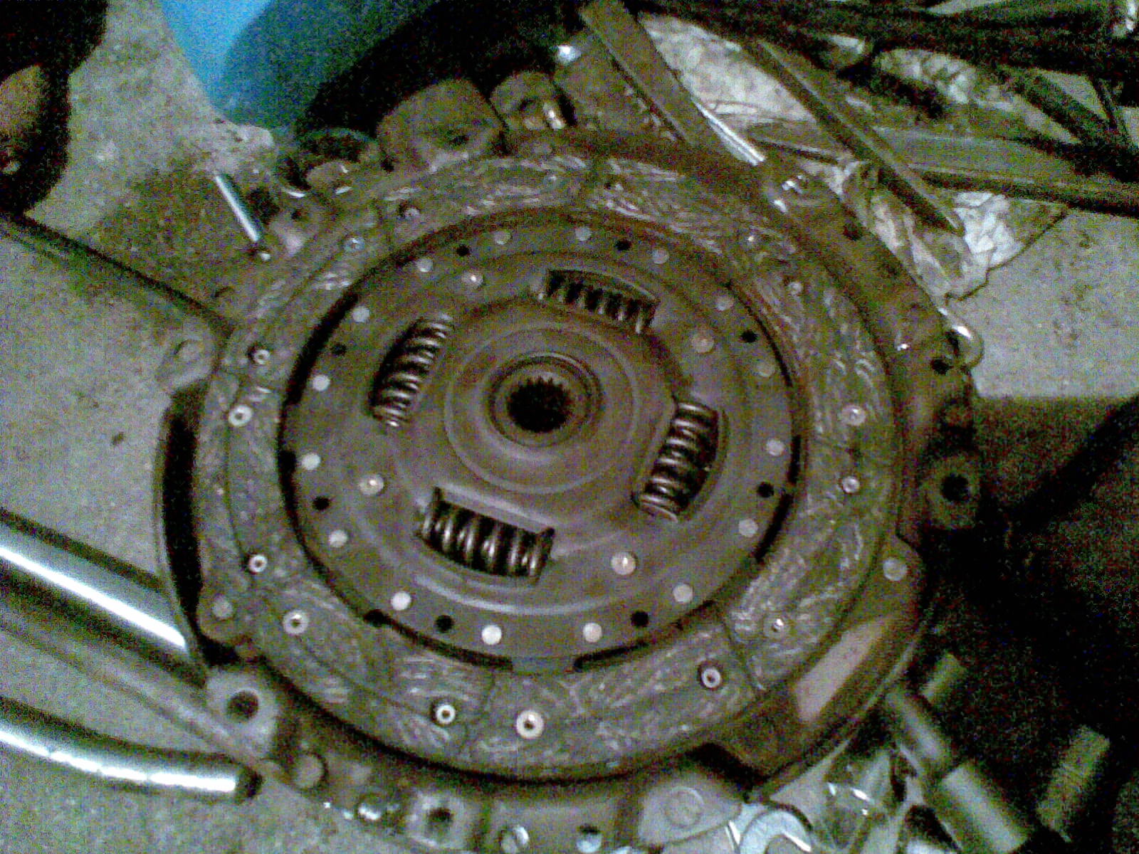 wczoraj znów trochę walki z autem przy sprzęgle i nadal nic, co się okazało, tarcza nie pasuje, z tego co sie dowiedzialem wychodziły 2 rodzaje tarcz 210mm, bardziej wypukłe od strony skrzyni a drugi typ mniej wypukłe, no i teraz albo trzeba inna tarczę albo docisk do innego typu tarczy, jutro ide do sklepu gdzie mi sprzedali ta tarcze i awanture zrobie jak nic, no i niech wymianiaja mi albo tarcze albo docisk bo z tego co wyszlo to sprzedali mi tarcze i docisk z 2 różnych kompletów... a chciałem zamawiac przez neta, dobrze ze sie powstrzymałem... porobiłem parę fotek, ale aparat mam beznadziejny i sa slabiutkie...