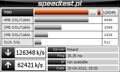Ogólnie u kolegi na kompie wynik był ok 1 mega, więc taki wynik bym przyjął za właściwy (speedtest.com). Rewelacji nie ma.