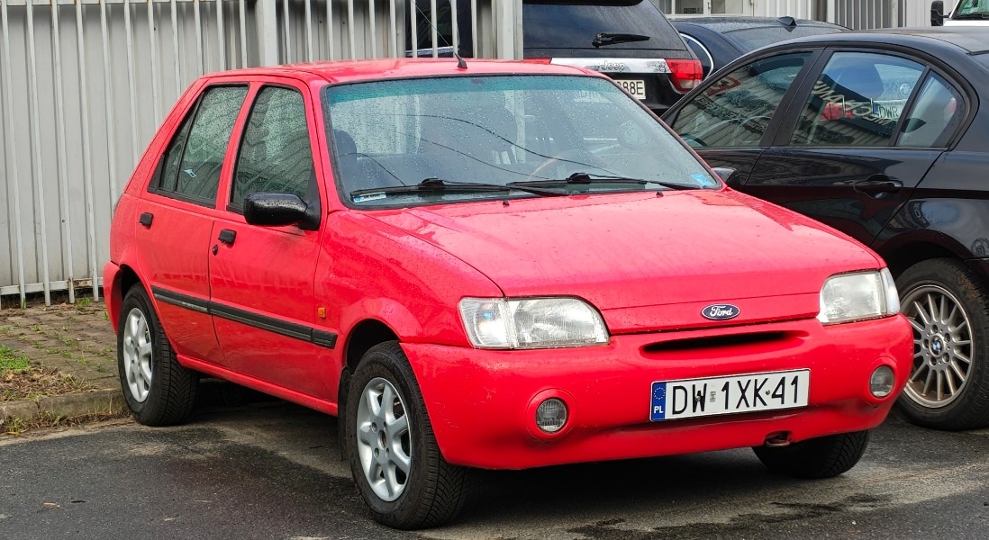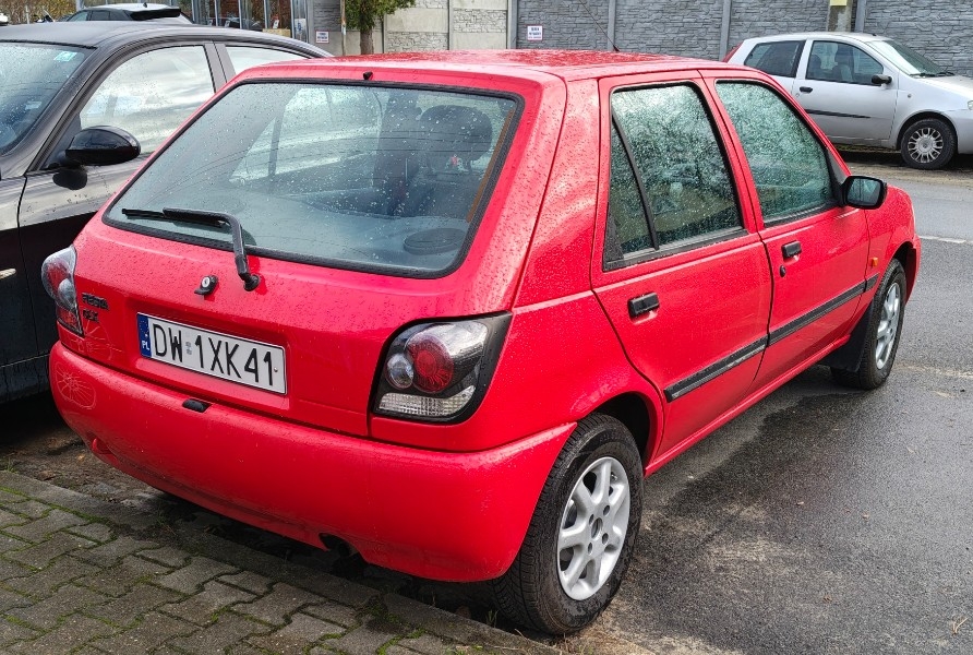 Niestety ktoś mocno skundlił tą Fiestę. Widać że filar na jakiej to powstało to przedliftingowa wersja ('89-'93). Te pełne zderzaki to domena wersji po liftingu po '94 podobnie jak lusterka boczne. Lampy z tyłu to już w ogóle upiór że oczy bolą.