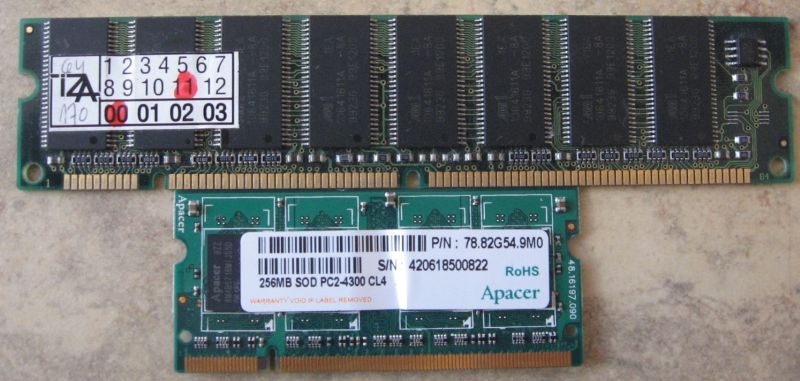 Kość od lapka 256 MB RAM oraz kość od kompa 64 MB