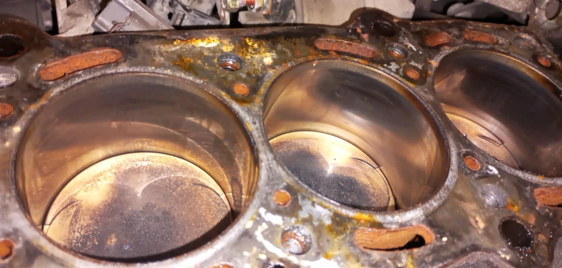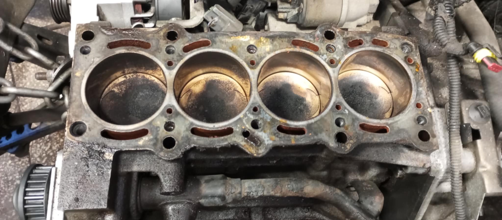 Blok silnika po demontażu głowicy i uszczelki