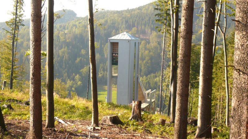 Skocznia widoczna z szlaku. Niestety od strony szlaku nie da się do niej dostać jest ogrodzona i ma bramę :-(