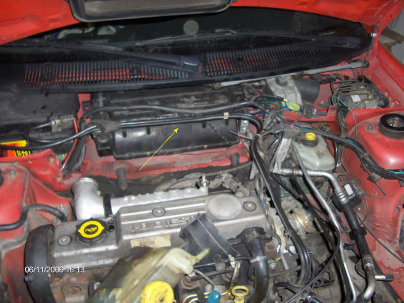 strzalka zaznaczony przewod ktory nalezy wyciagnac,bo juz nam nie bedzie potrzebny,bedzie potrzeba zalozyc inny taki zeby trafil w nowe miejsce pompy wspomagania. A druga strzalka pokazuje gdzie montuje sie łape pompy wspomagania