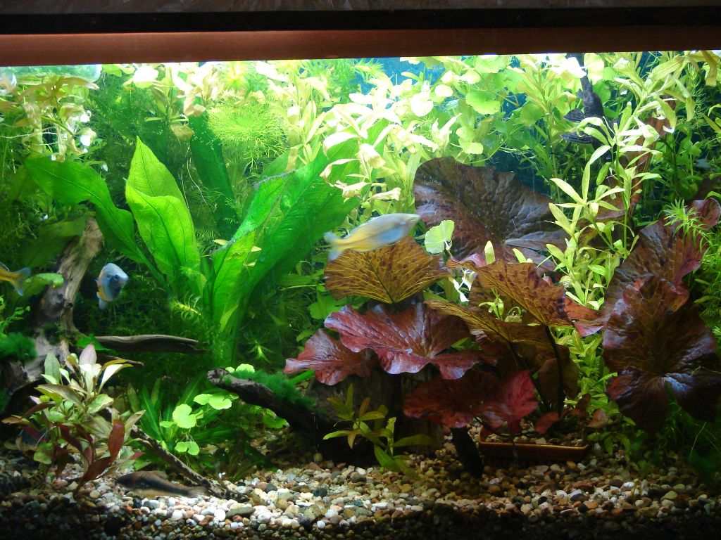 nie myślałeś, żeby na tylnią szybę akwarium przykleić specjalną folię z obrazkiem jakichś roślin wodnych? fajna sprawa i nie odbija ci się w tylniej szybie to co masz w akwarium. pozdrawiam