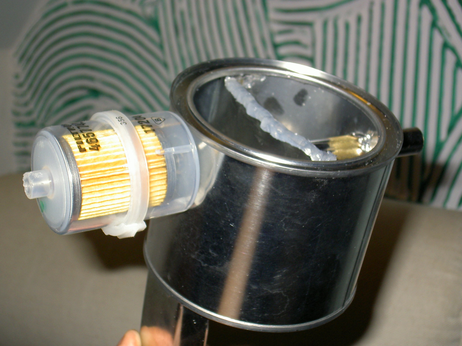 takie cos to ja zrobiłem z puszki na kawe i druciaka do mycia garów koszt ok 9 zł i co trzy lub cztery miesiące ok 2-2,50 zł komplet trzech druciaków. plusem było to że puszka była otwierana i druciak wymienny wiec można było czyścić co pewien czas. odma wchodziła do samego dna puszki a przewód odprowadzający opary już "przeczyszczone" był zamocowany w deklu puszki.
