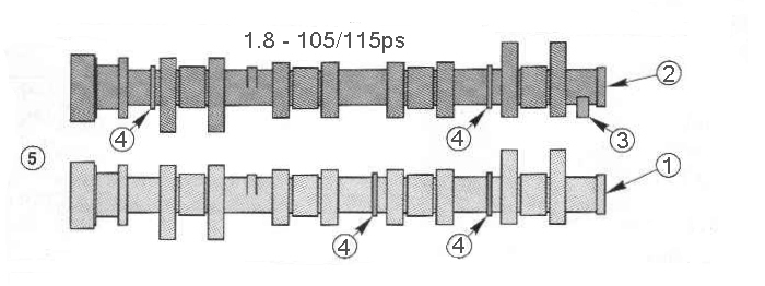 wszystkie wałki których zdjęcia wstawiłeś za wyjątkiem pierwszego małego zdjęcia z 1,6 maja te same oznaczenia, takie jak wałki o które się pytałeś na początku... Więc może błąd jest w tych schematach wałków które wstawiłeś z angielskiej strony? Albo wbrew temu schematowi dla 1,8 105/115KM wałek w obu tych silnikach jest inaczej oznaczony.