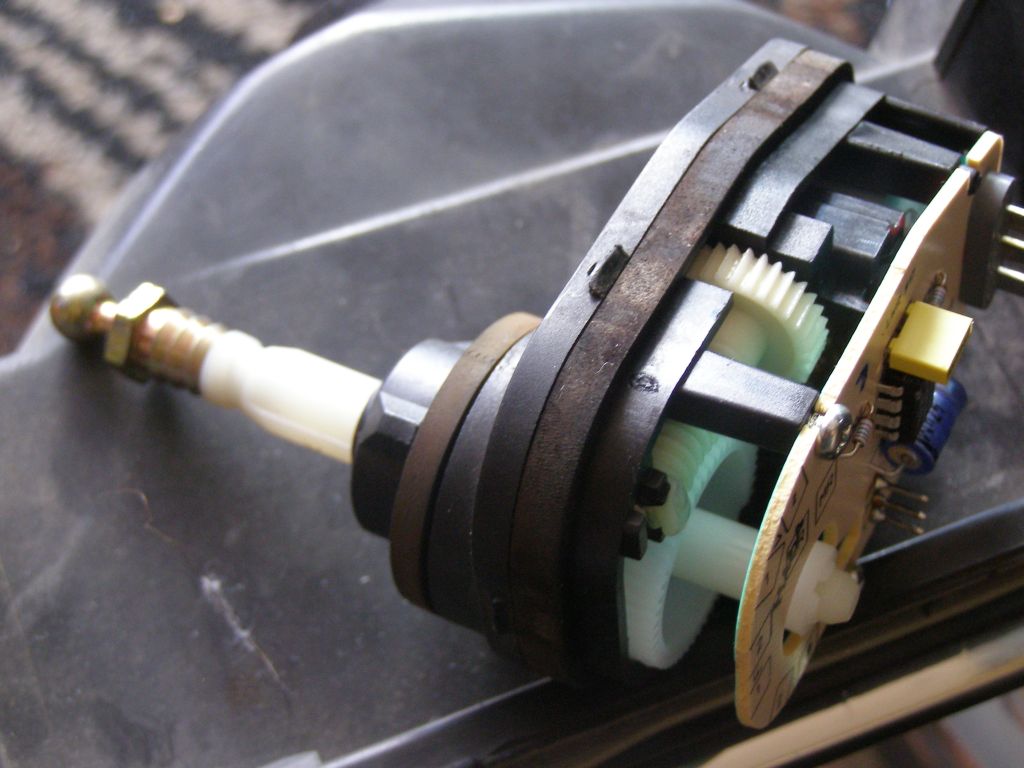 Rozebrałem dzisiaj siłownik od reflektora. I wpadłem na pomysł, żeby wykorzystać silnik i przekładnię ślimakową do napędzania szyberdachu. Jak myślicie - może to zdać egzamin? Tak to wygląda w środku: