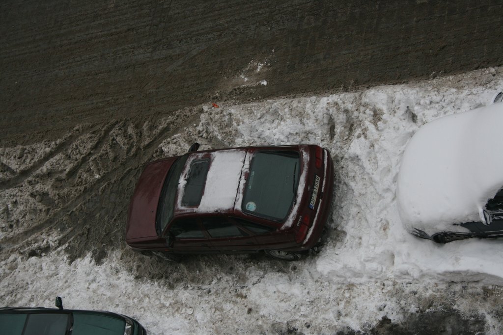Wczoraj (11.01.2010) miałem wizyte w Opolu. Koło 1:30 w nocy, odśniezyłem go (po raz kolejny), odlodziłem, usunałem snieg do wyjazdu, bo pługi zrobiły mi ponad 70 cm "krawężnik". W nocy też jakiś Escort czaił się aż wyjade, bo wskoczyłby na moje miejsce 0:) Niestety, nie dałem mu tej przyjemności. Mimo, że miejsca były, to moje wtedy było taką perełką w okolicy 0:) sama ulica pod samochodem.