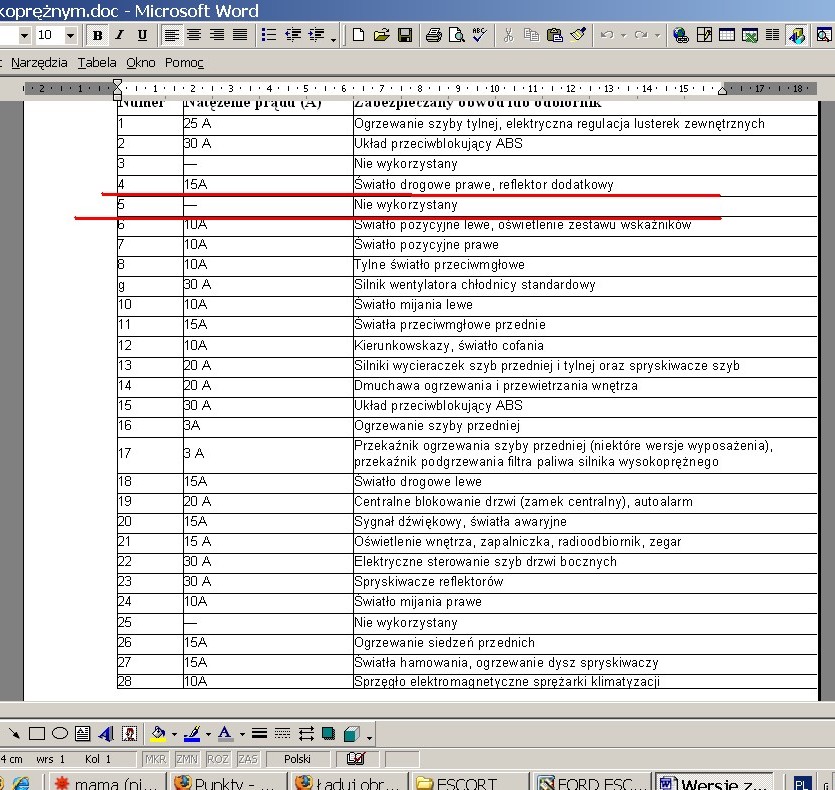 no właśnie miałem to napisać że tak jest w instrukcji. dzisiaj zapomniałem ale jutro sprawdzę jak to u mnie wygląda z tym bezpiecznikiem nr 5. nie powinno być dużej różnicy między twoim a moim samochodem.
