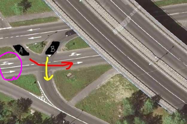 ira Auto A nie jedzie pod prąd, jeżdże tam z 10 razy w tygodniu, tak wygląda to z perspektywy auta A: